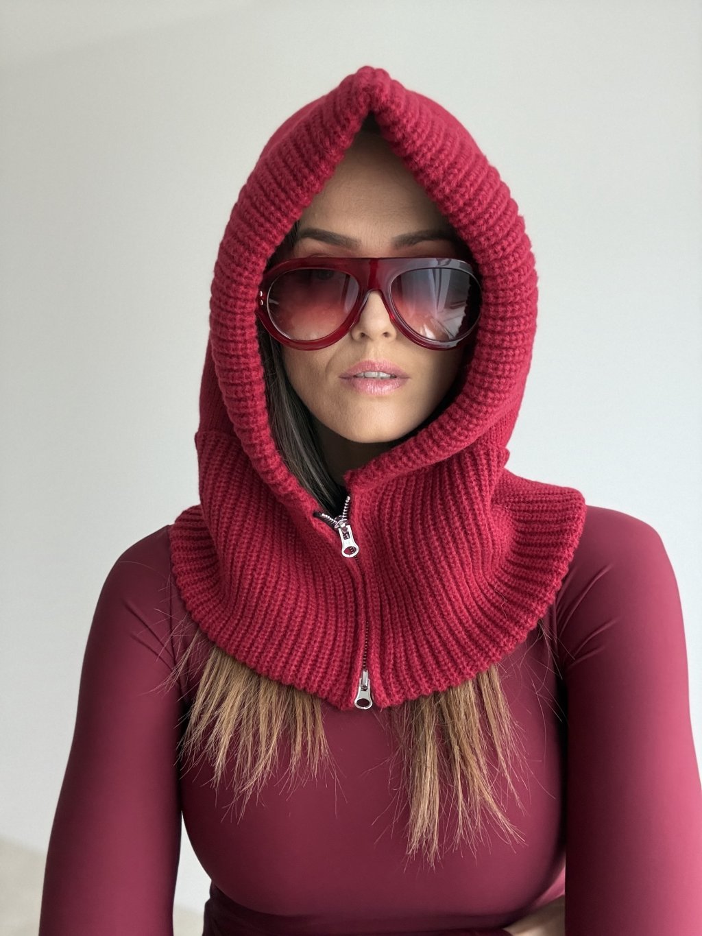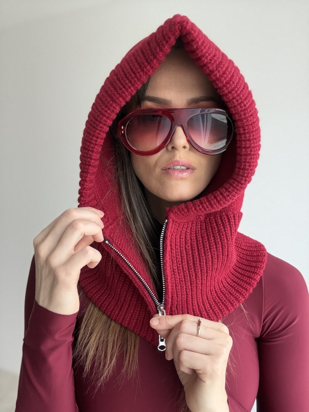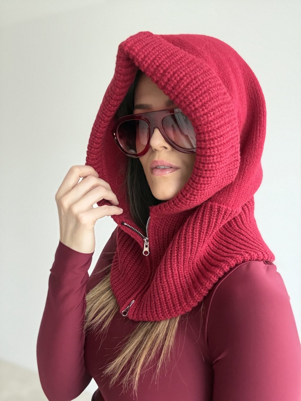 Pletená kukla so zipsom, mäkká a hrejivá, s pohodlným lemom okolo tváre a ľahkým vrstvením na každý deň.