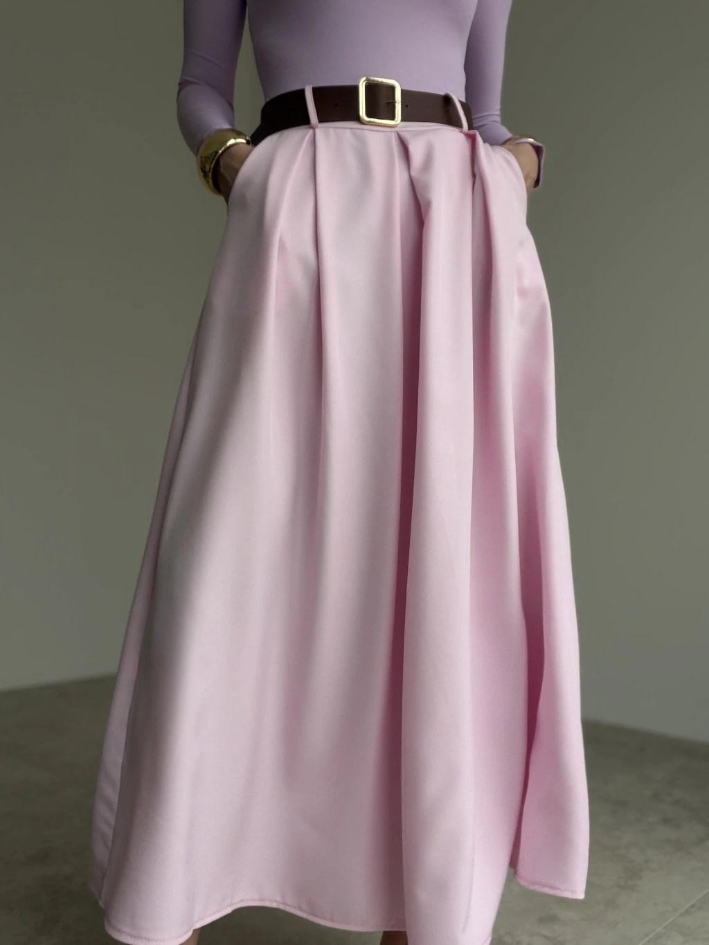 Elegantná maxi sukňa s vysokým pásom, jemne skladaným strihom a praktickými vreckami. Nadčasový a ženský kúsok, ktorý sa ľahko kombinuje na bežné nosenie aj elegantnejšie príležitosti.