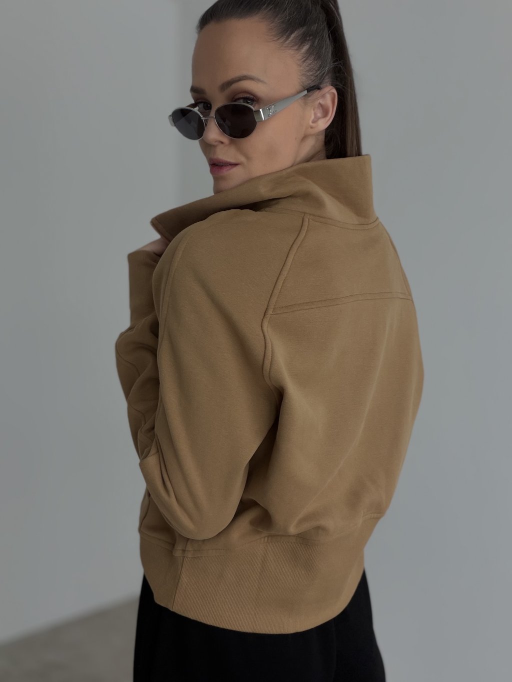 Aby si zachovala pekný tvar stojačika a lemu, nechaj mikinu po praní voľne vyschnúť a nepreťažuj ju na vešiaku.