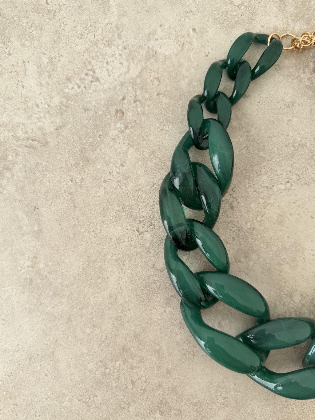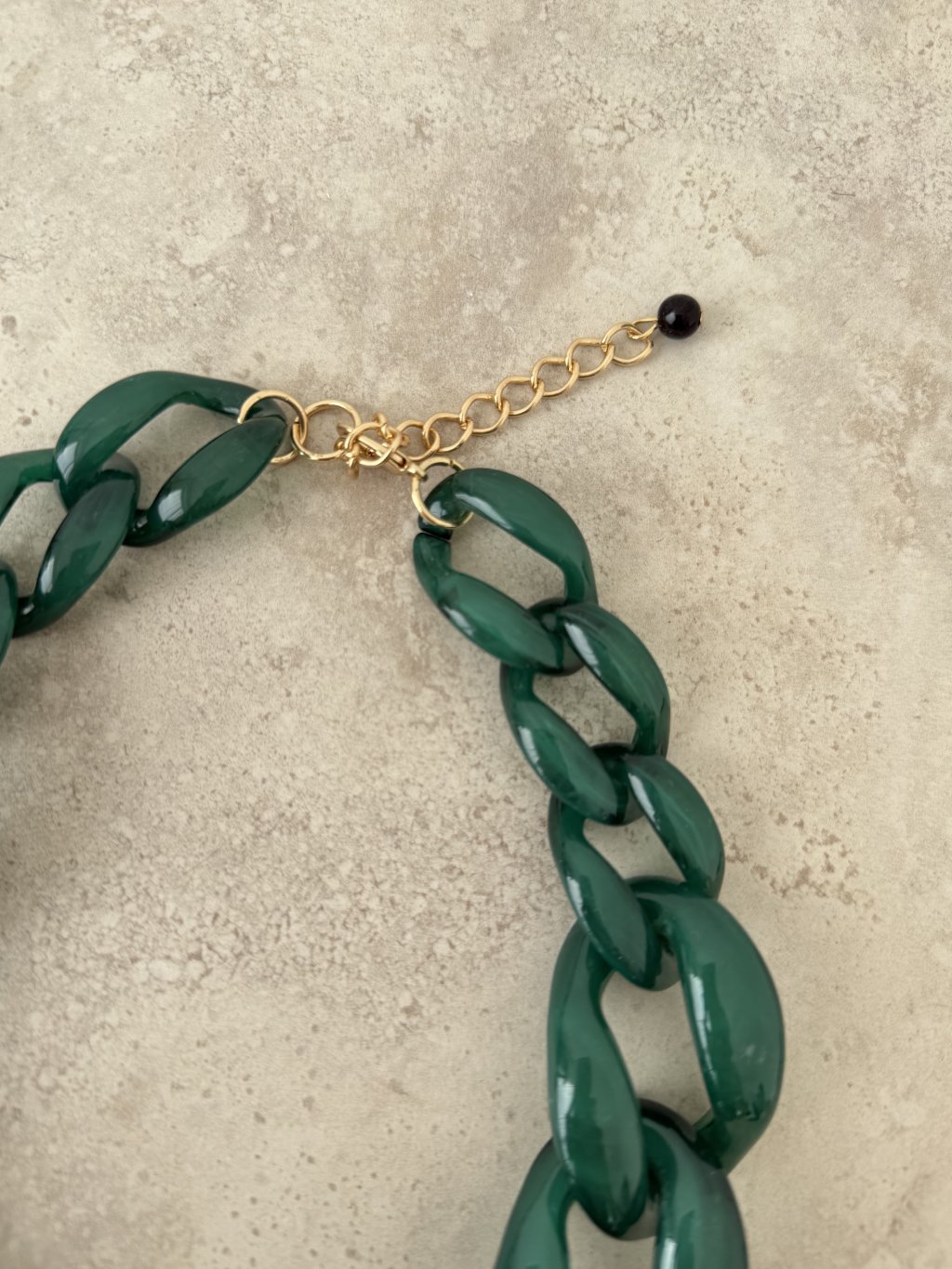 Výrazný náhrdelník s veľkými lesklými článkami, zapínaním na karabínku a predlžovacou retiazkou pre nastaviteľnú dĺžku. Ideálny doplnok na oživenie jednoduchých outfitov.