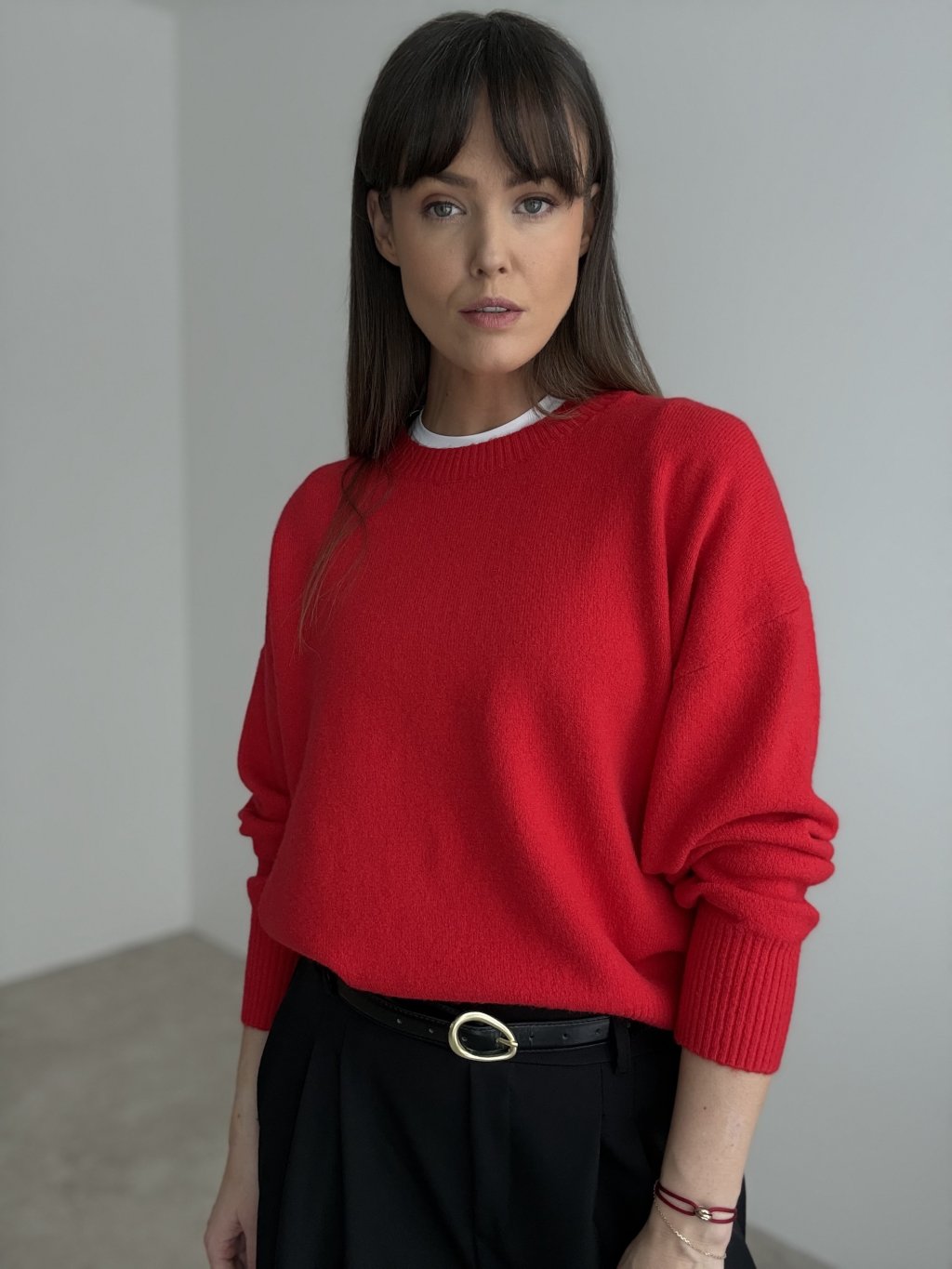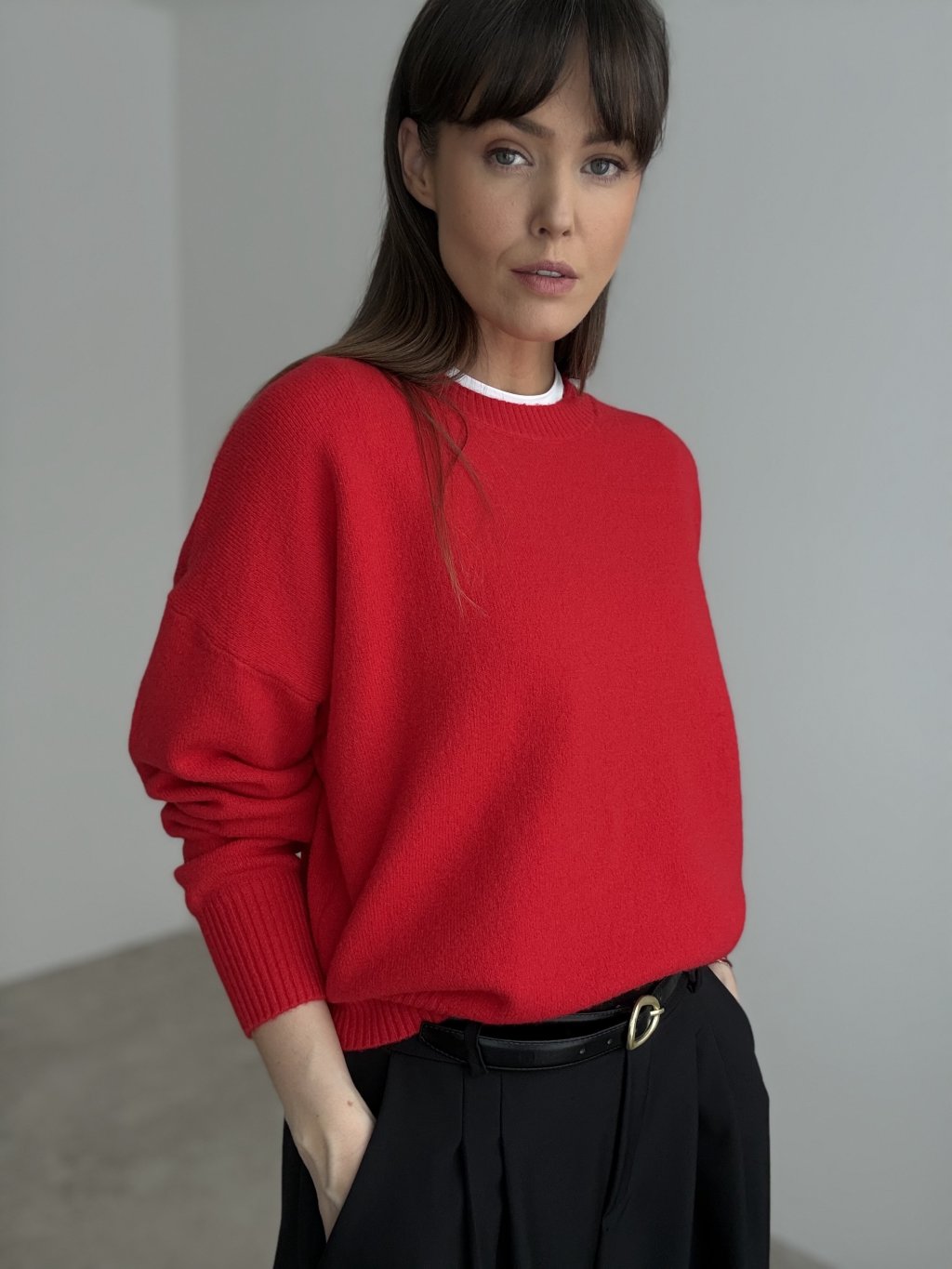 Oversize pulóver s jemnou štruktúrou a mäkkým povrchom prináša dokonalé pohodlie a ležérnu eleganciu v jednom. Uvoľnený strih s mierne spustenými ramenami pôsobí moderne a štýlovo, pričom sa ľahko kombinuje s džínsami, legínami či sukňou. Príjemný materiál sa prispôsobí pohybu tela a zaručuje komfort počas celého dňa. Elastické lemy na rukávoch a spodnom okraji držia tvar a dodávajú pulóvru čistú siluetu. Ideálny na bežné nosenie aj chvíle oddychu. Biele tričko nie je súčasťou.