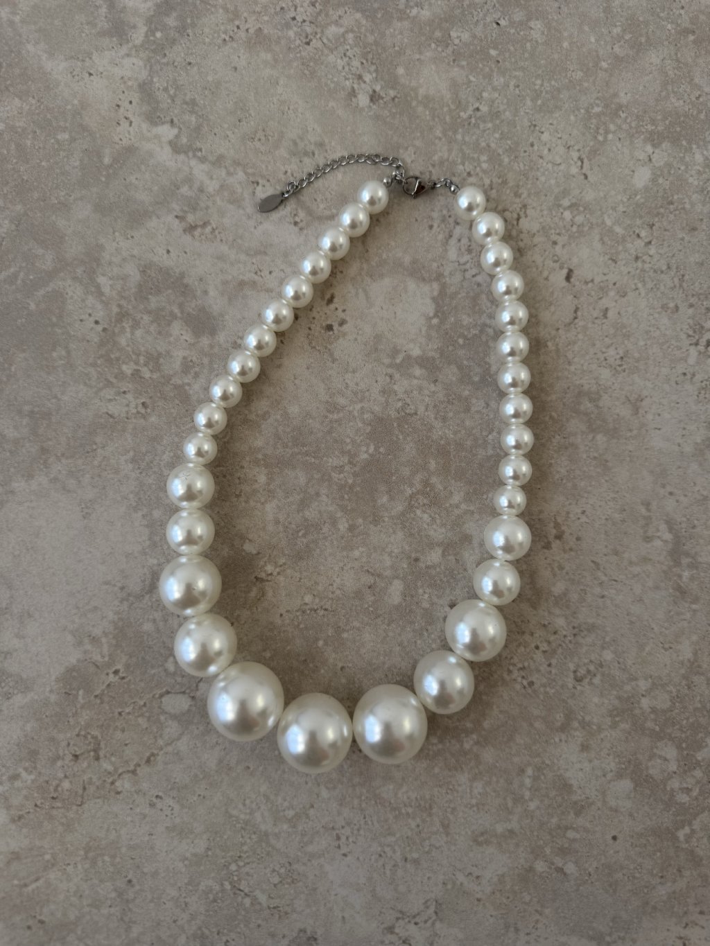 Elegantný perlový náhrdelník, ktorý okamžite dodá outfitu upravený a luxusný vzhľad. Vďaka výraznejším perlám pôsobí ako šperk, ktorý upúta, no zároveň zostáva nadčasový a ľahko kombinovateľný. Skvelo doplní jednoduché topy, roláky, košele aj šaty, a je ideálny vtedy, keď chceš vyzerať „hotovo“ bez zbytočného premýšľania.