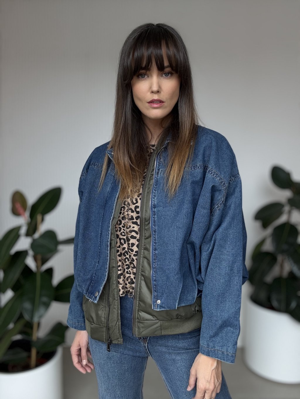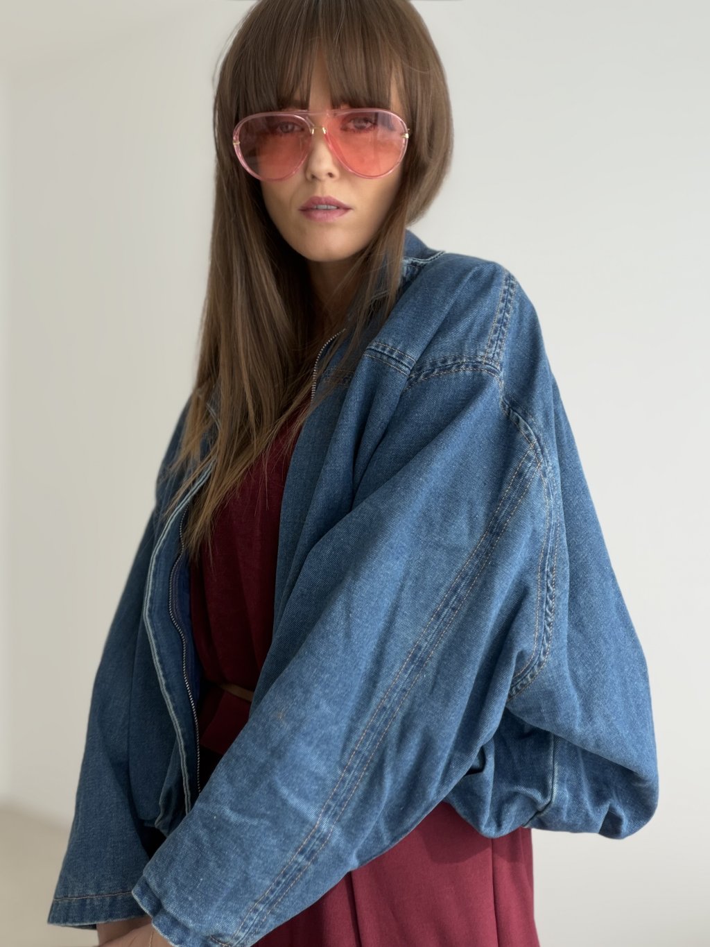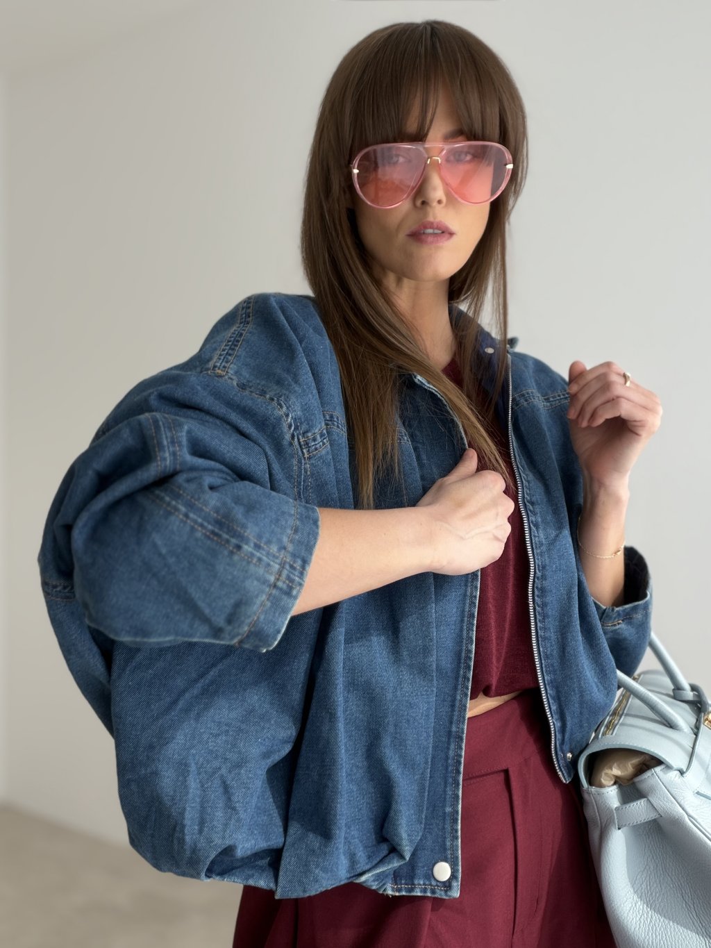 Balonowa kurtka dżinsowa o luźnym kroju i nowoczesnym wyglądzie.