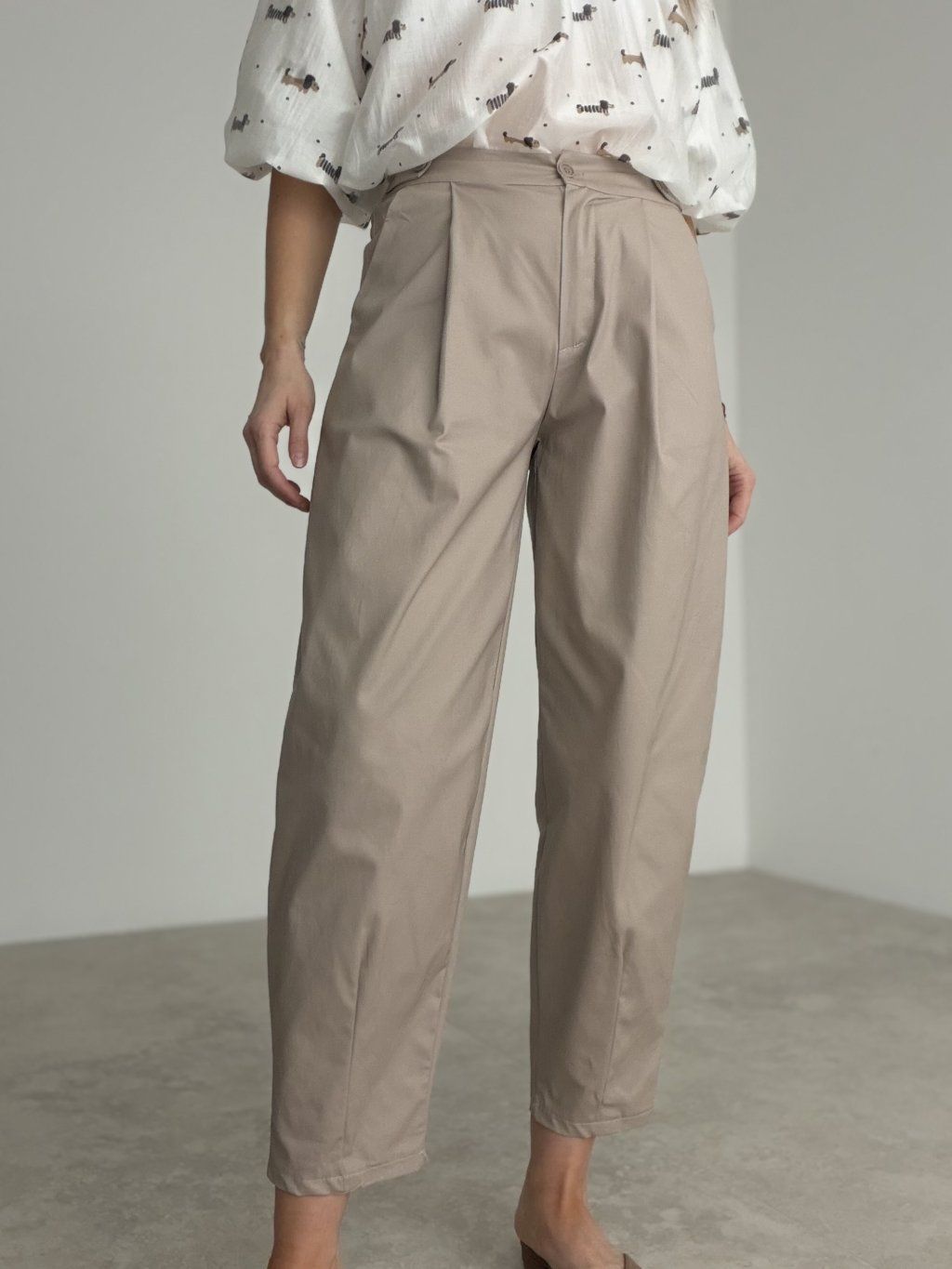 Stylowe bawełniane spodnie o wygodnym fasonie, z przednimi zakładkami i eleganckim wykończeniem. Uniwersalny model na co dzień i do bardziej dopracowanych stylizacji.