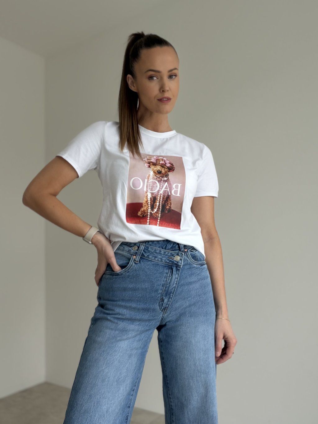 Bawełniany T-shirt z oryginalnym nadrukiem, który łączy wygodę, lekkość i nowoczesny styl w jednym wyrazistym modelu.