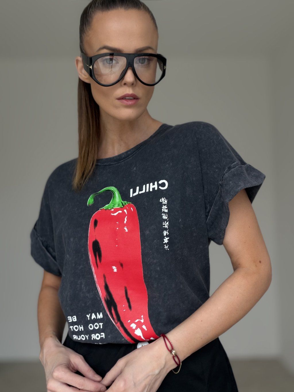 - Stylizację możesz uzupełnić wyrazistymi okularami, torebką lub prostą biżuterią.