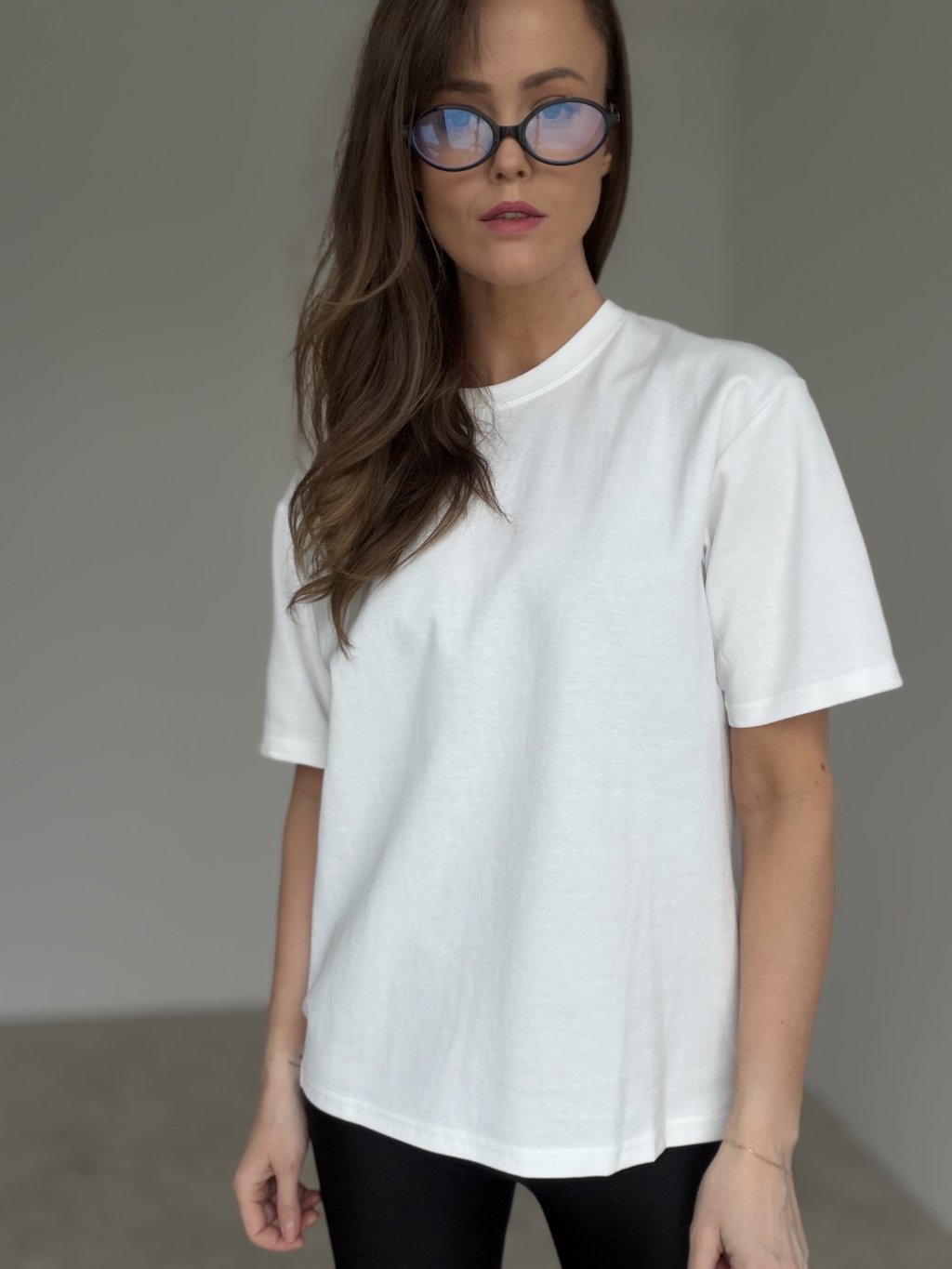 Bawełniany t-shirt o czystym, ponadczasowym fasonie, który świetnie sprawdza się na co dzień. Ma luźniejszy krój z delikatnie obniżoną linią ramion i wygodnymi rękawami, dzięki czemu wygląda nowocześnie i zapewnia komfort noszenia. Klasyczny, okrągły dekolt dobrze układa się przy szyi, a t-shirt łatwo zestawisz z jeansami, spodniami lub spódnicą. Idealny na co dzień, w podróży oraz do warstwowych stylizacji pod marynarkę lub kurtkę, gdy chcesz wyglądać schludnie bez wysiłku.