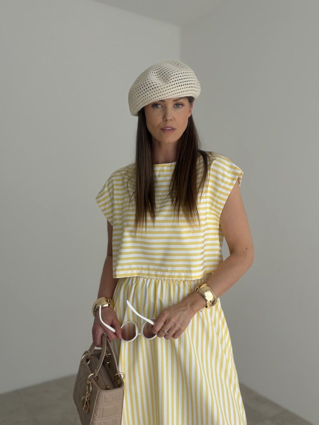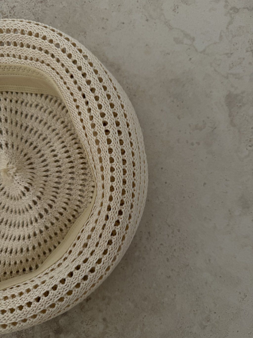 Szydełkowy beret z delikatnym ażurowym wykonaniem i eleganckim kształtem. Stylowy dodatek, który pięknie ożywi letnie oraz przejściowe stylizacje.