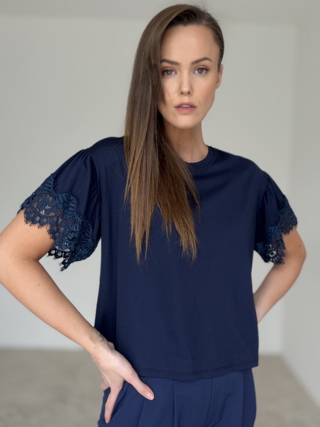 Elegancki model, który łączy prostotę z delikatnym, kobiecym detalem. Swobodny fason bardzo dobrze układa się na sylwetce i z łatwością sprawdza się zarówno w codziennych, jak i bardziej eleganckich stylizacjach. Wyjątkowym elementem są subtelne rękawy, które nadają całości romantycznego i wysmakowanego charakteru.