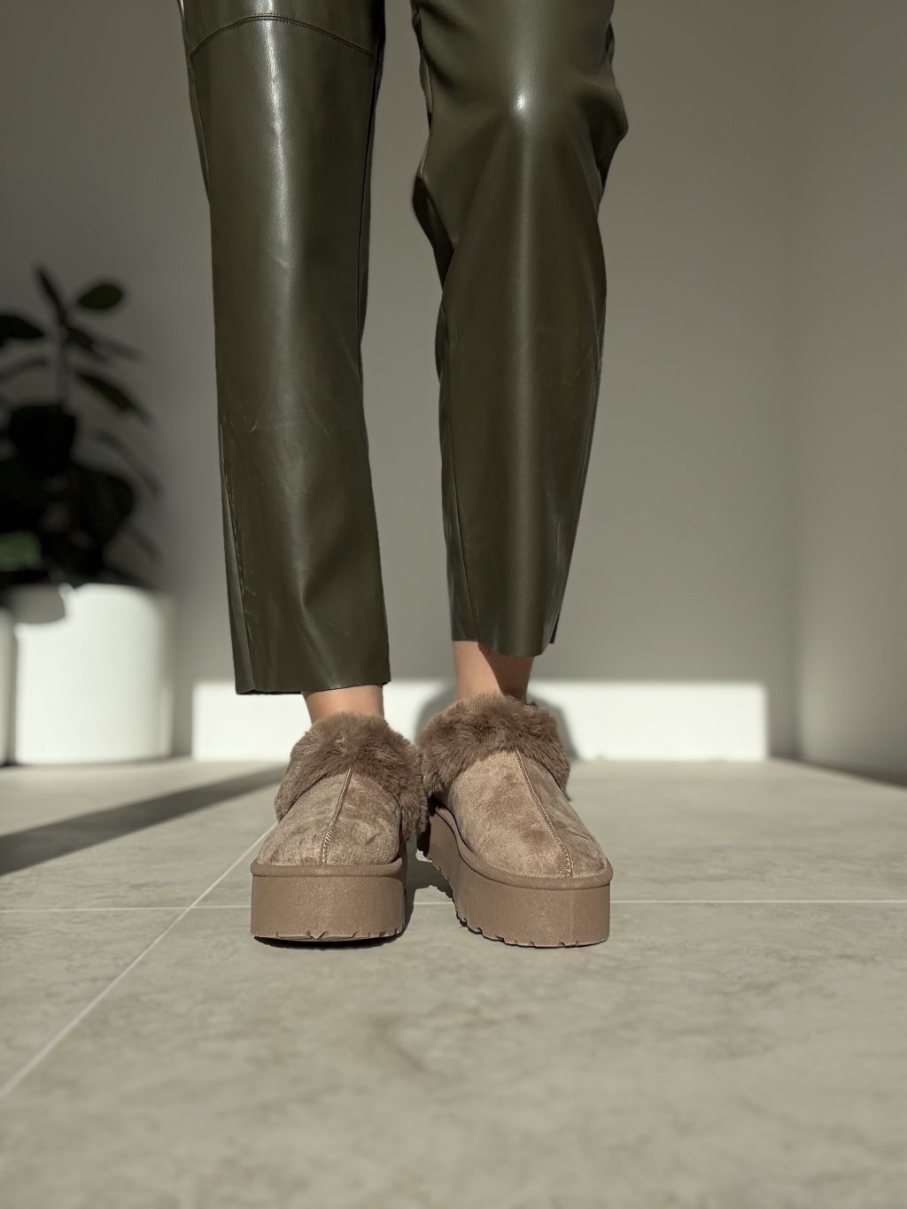 Buty z futerkiem, miękka wyściółka i stabilna platforma, antypoślizgowa podeszwa i wygoda na co dzień.