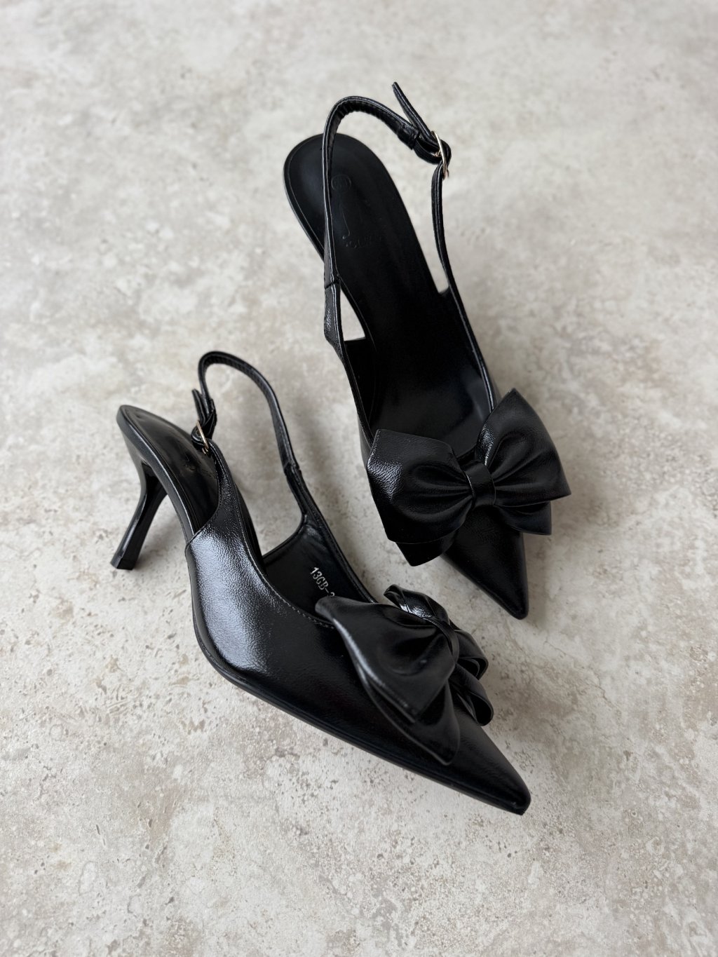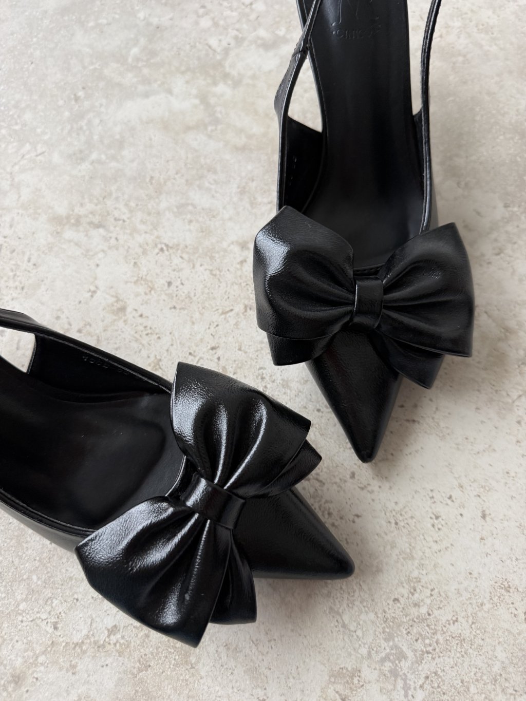 Eleganckie czółenka z odkrytą piętą i dekoracyjną kokardą z przodu dodają stylizacji kobiecego, szykownego charakteru. Smukły obcas o wysokości 7 cm optycznie wydłuża nogi, a jednocześnie pozostaje wygodny nawet przy dłuższym noszeniu. Wąski, wydłużony nosek wysmukla stopę, a regulowany pasek z tyłu pomaga utrzymać but stabilnie na nodze. Gładkie wykończenie nadaje im luksusowego wyglądu, natomiast kokarda sprawia, że całość jest jednocześnie elegancka i delikatnie dziewczęca – idealna na przyjęcia, wieczorne wyjścia oraz bardziej formalne okazje.