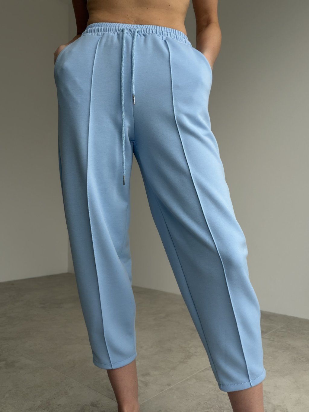 Wygodne spodnie dresowe z elastyczną talią i sznurkiem, luźniejszym krojem oraz długością przed kostkę. Idealne na co dzień i w podróży.