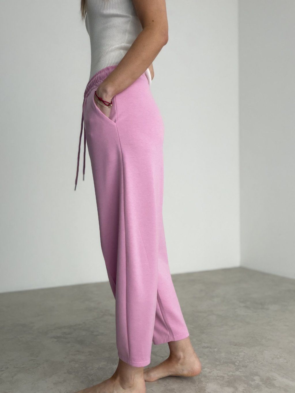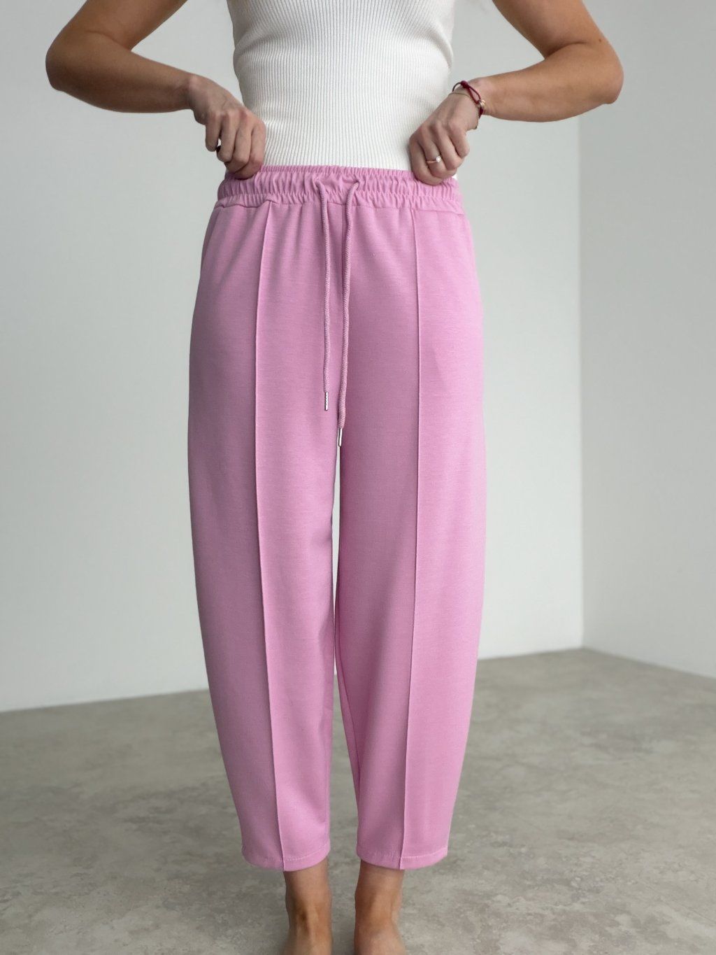 Wygodne spodnie dresowe z elastyczną talią i sznurkiem, luźniejszym krojem oraz długością przed kostkę. Idealne na co dzień i w podróży.