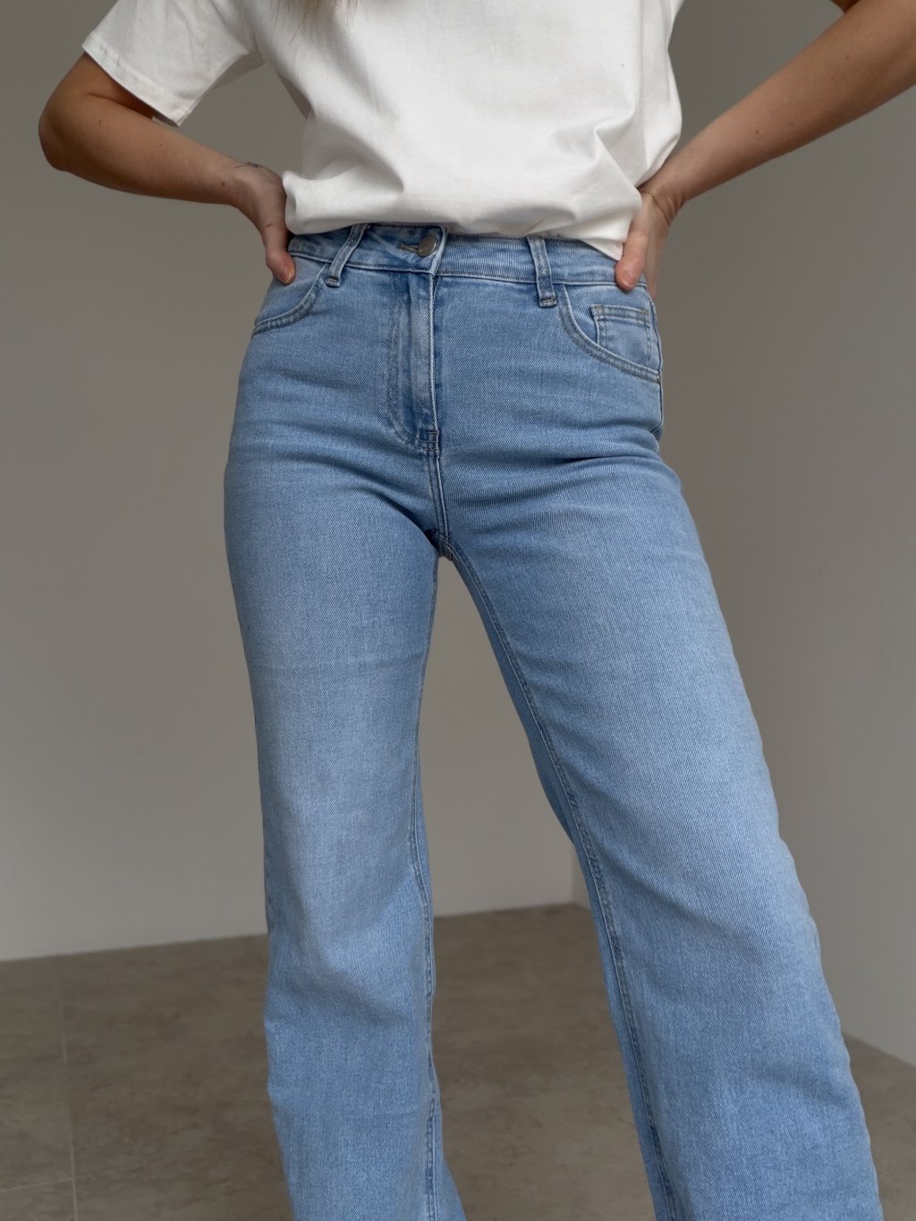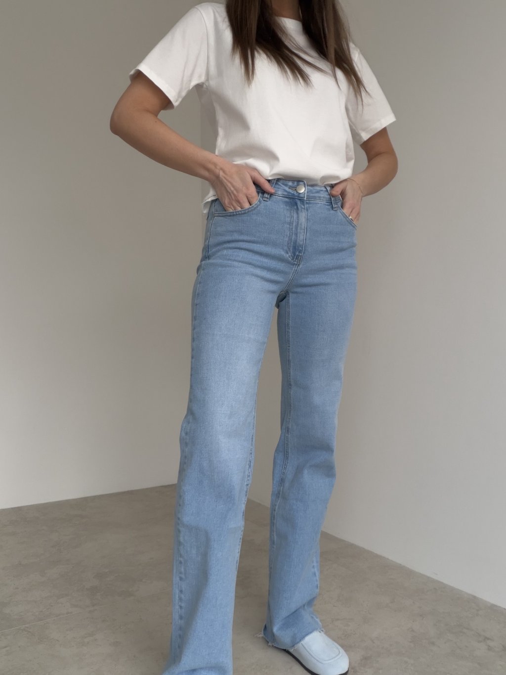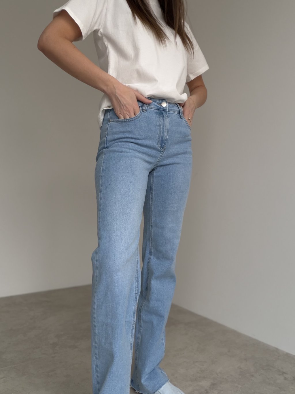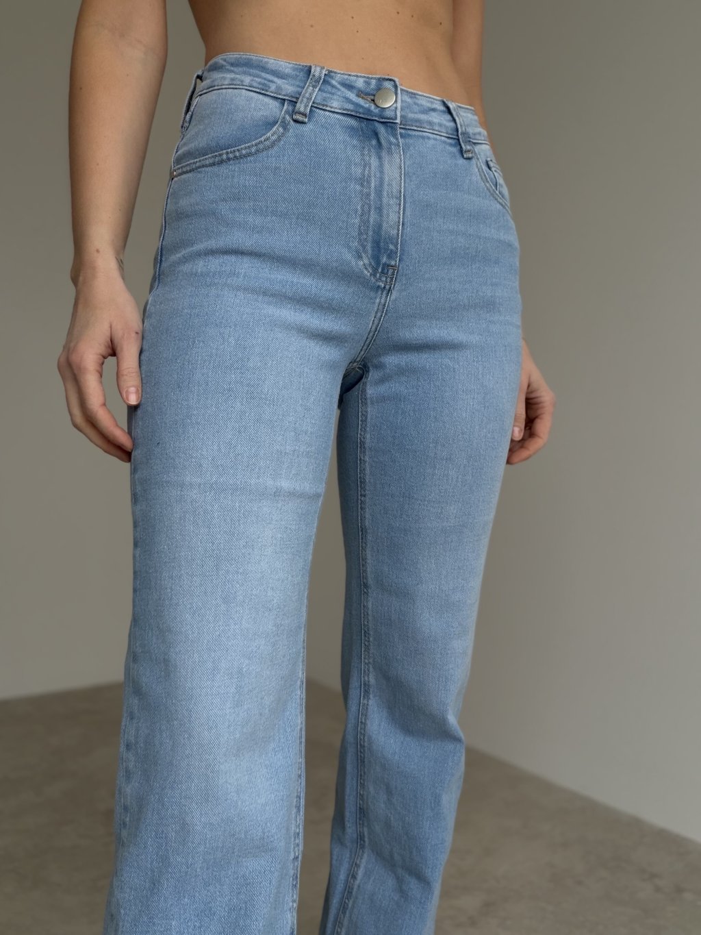 Ekstra długie dżinsy z podwyższonym stanem i ponadczasowym krojem, które optycznie wydłużają sylwetkę.