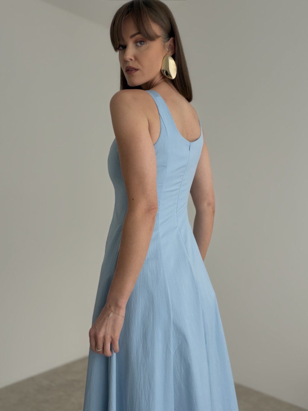 Elegancka sukienka midi to połączenie delikatności, kobiecości i ponadczasowego stylu. Dopasowana góra na cienkich ramiączkach pięknie podkreśla sylwetkę, a rozkloszowana część spódnicowa dodaje lekkości i eleganckiego ruchu podczas chodzenia. Model prezentuje się bardzo subtelnie, szykownie i z klasą, dlatego doskonale sprawdzi się na wesela, uroczystości, letnie przyjęcia oraz wyjątkowe okazje, kiedy chcesz wyglądać elegancko i kobieco. Zapięcie na zamek z tyłu zapewnia wygodne zakładanie i dobre dopasowanie do sylwetki.