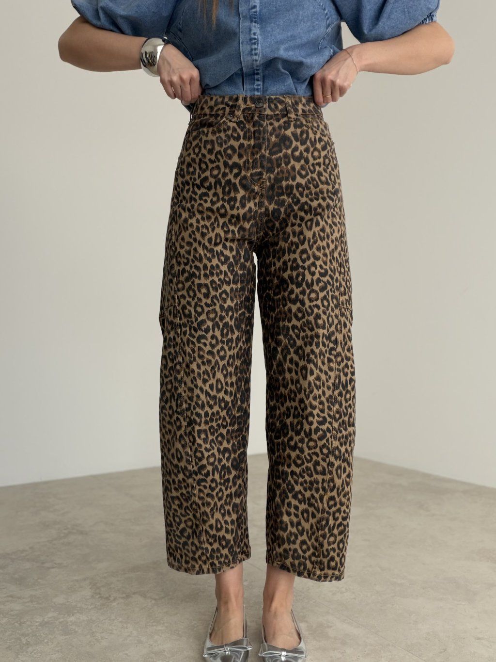Stylowe jeansy o kroju barrel z wysokim stanem, luźniejszym krojem w okolicy ud, praktycznymi kieszeniami i lekko zwężanymi nogawkami. Wyrazisty element do nowoczesnych stylizacji.