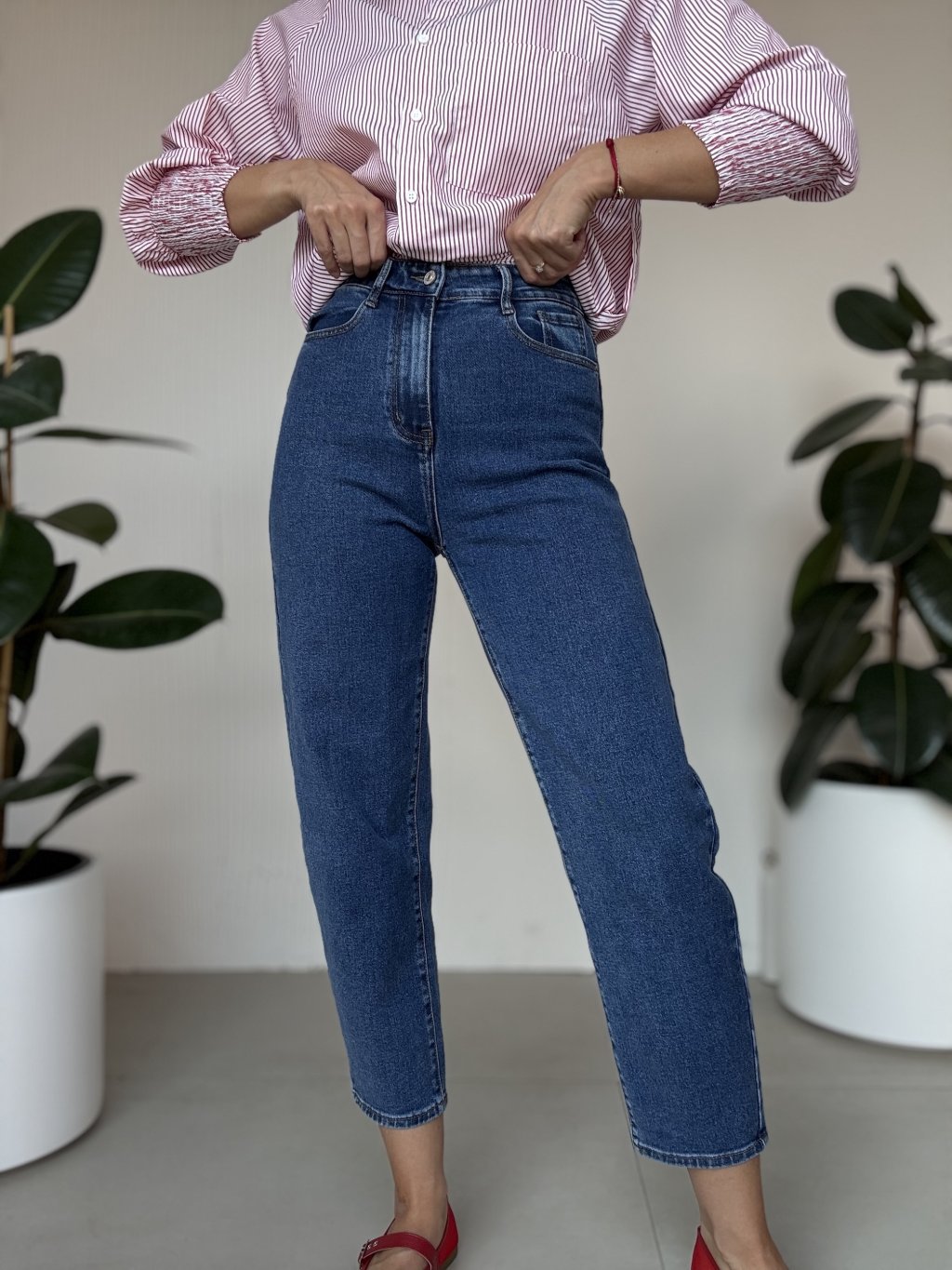 Nowoczesne jeansy typu balloon z wysokim stanem i lekko luźnym krojem, który wygląda komfortowo i stylowo jednocześnie. Klasyczny denim nadaje ponadczasowy wygląd i łatwo łączy się z różnymi elementami w Twojej garderobie. Idealne do noszenia na co dzień, gdy chcesz połączyć komfort i elegancję.