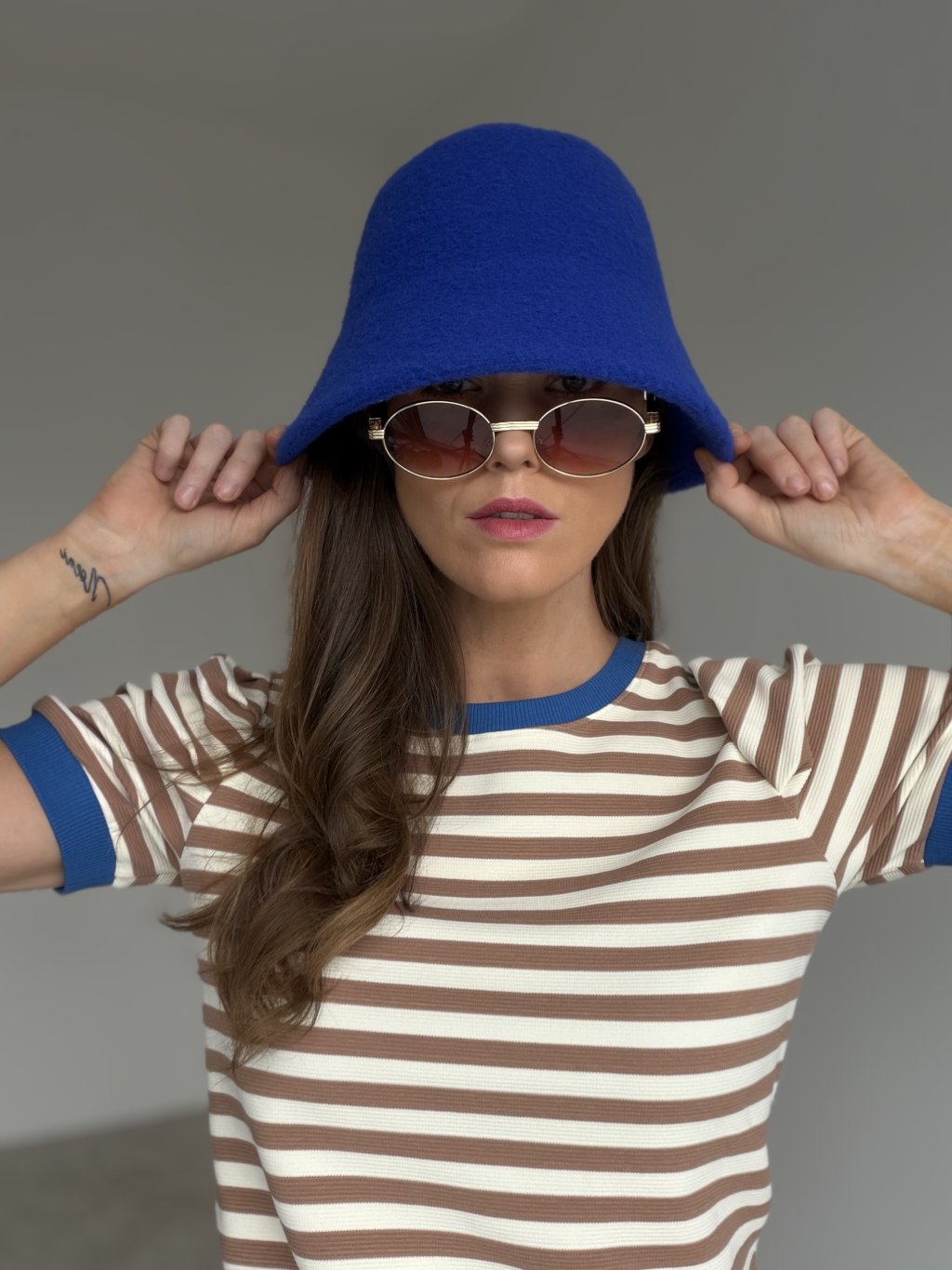Stylowy kapelusz o prostym, a zarazem eleganckim kroju, który natychmiast nadaje stylizacji nowoczesnego charakteru. Wykonany z miękkiego materiału zapewnia komfort noszenia, a wyprofilowane rondo chroni zarówno przed słońcem, jak i wiatrem. Idealny dodatek na jesienne i zimowe dni, świetnie komponuje się z płaszczem, kurtką czy codziennym zestawem.