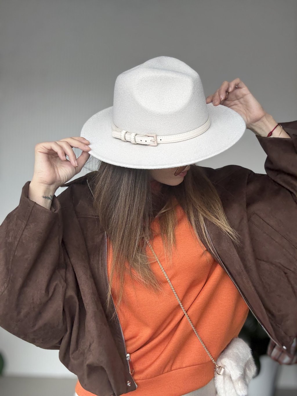 Elegancki kapelusz z szerokim rondem, który nada każdej stylizacji wyrafinowany charakter. Wykonany z wysokiej jakości, solidnego materiału, gwarantującego trwałość i komfort noszenia. Kapelusz uzupełniony subtelnym paskiem z metalową klamrą dodaje stylowego akcentu. Doskonały na co dzień, ale także na specjalne okazje.
