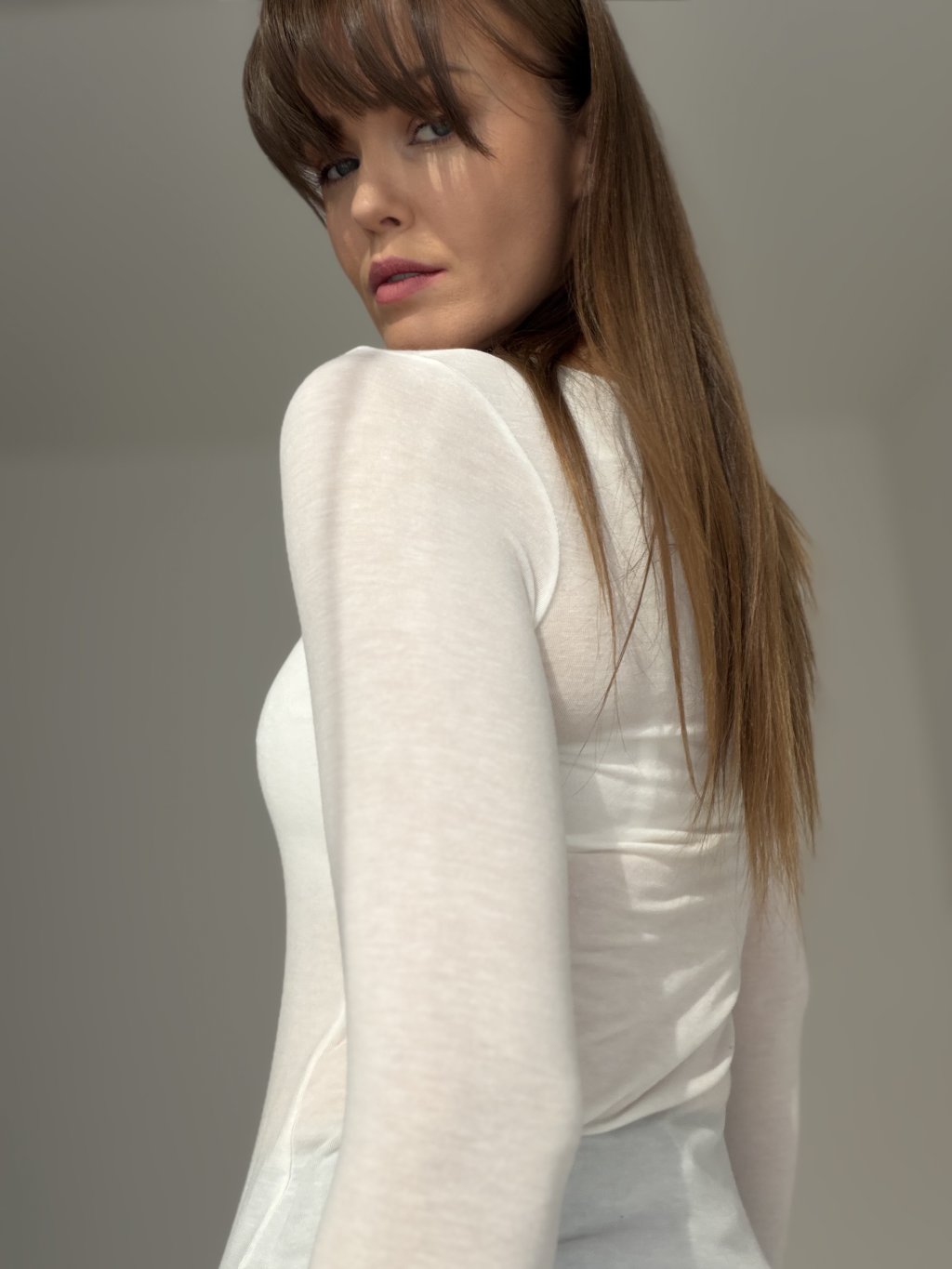 Miękki kaszmirowy top z długim rękawem i eleganckim dekoltem łódką. Lekka, przyjemna w dotyku dzianina wygodnie układa się na sylwetce i świetnie sprawdza się w warstwowych stylizacjach. Prosty, minimalistyczny krój jest ponadczasowy—łatwo łączy się ze spódnicą i spodniami na co dzień i na bardziej eleganckie okazje.