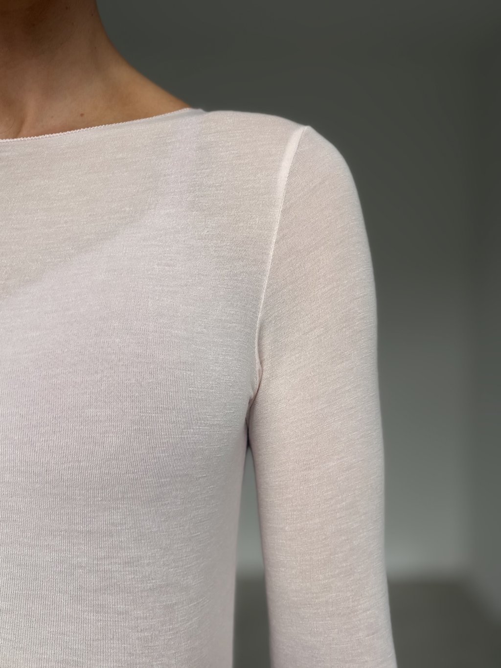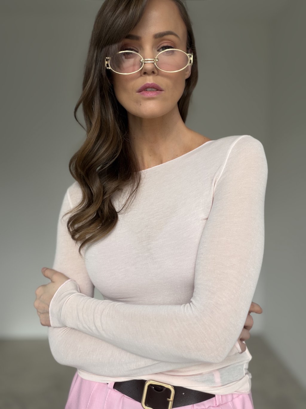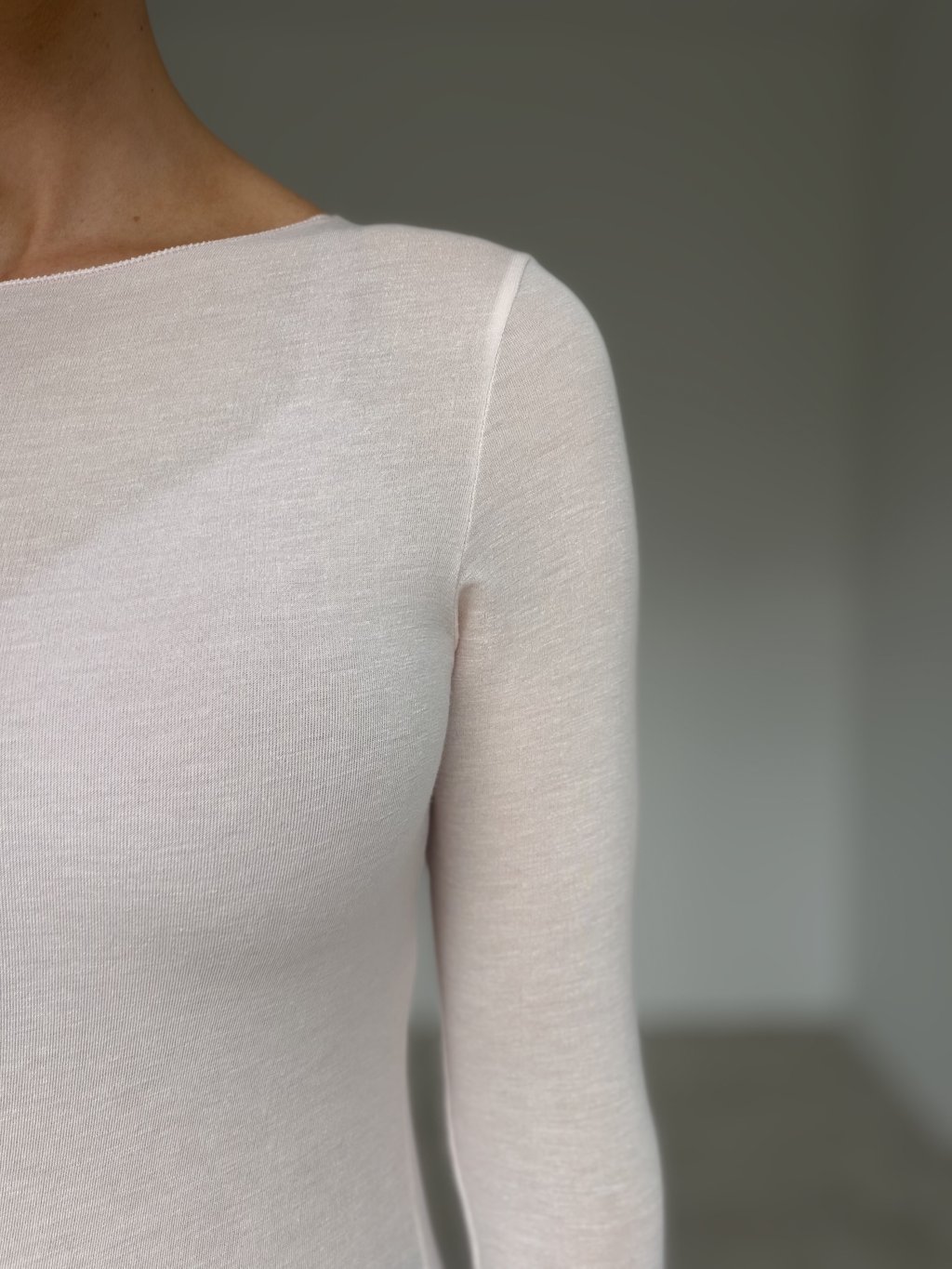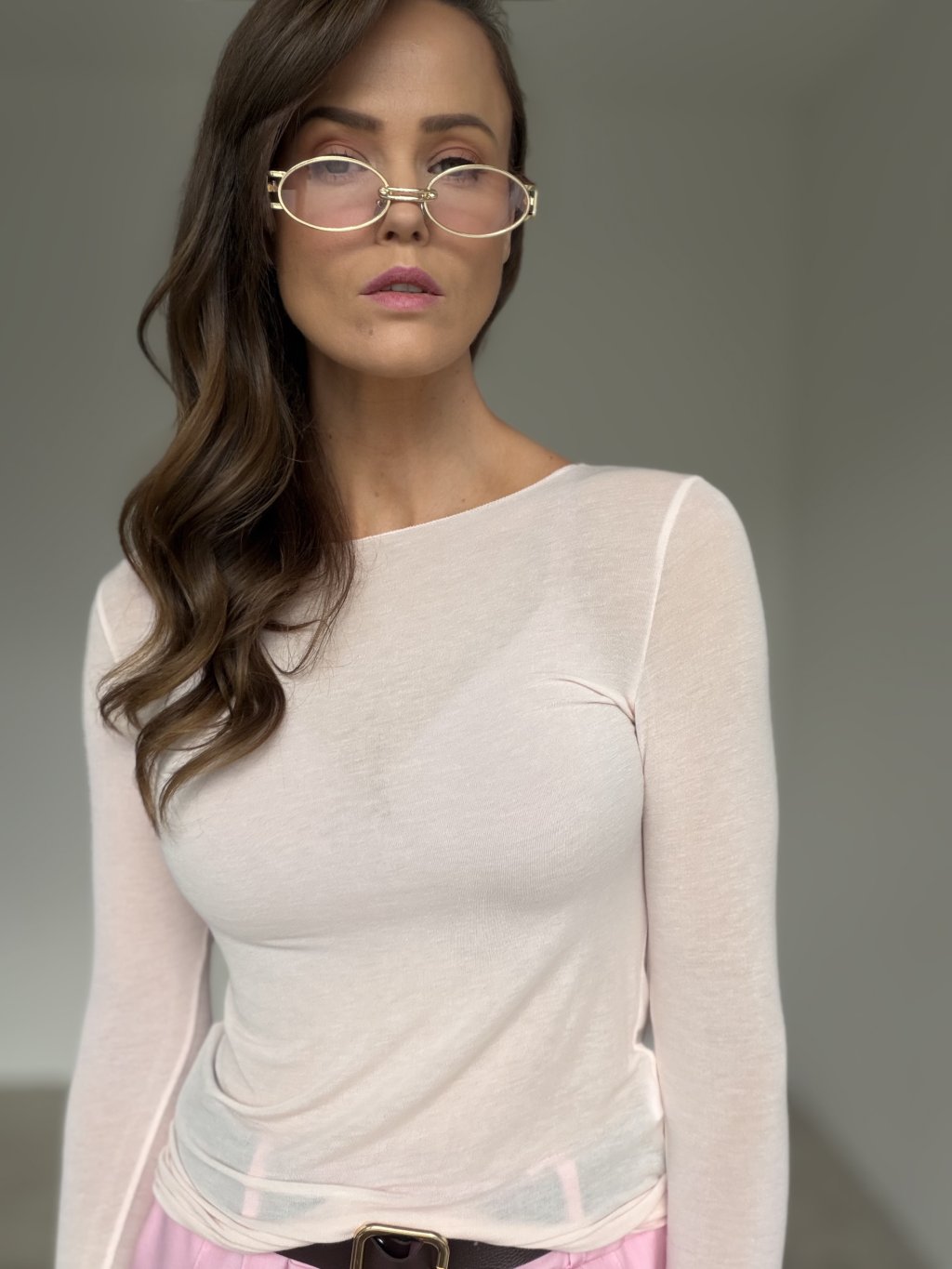 Miękki kaszmirowy top z długim rękawem i eleganckim dekoltem łódką. Lekka, przyjemna w dotyku dzianina komfortowo układa się na sylwetce i świetnie sprawdza się w warstwowych stylizacjach. Prosty, minimalistyczny krój jest ponadczasowy—łatwo łączy się ze spódnicą i spodniami na co dzień i na bardziej eleganckie okazje.