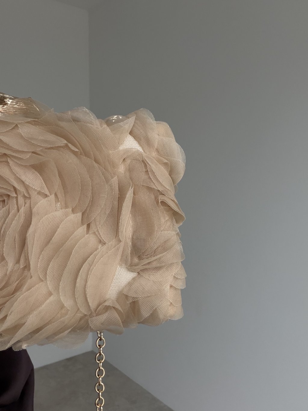 Ta torebka wieczorowa to wyrazisty dodatek, który od razu nadaje stylizacji elegancki, odświętny charakter. Powierzchnia ma miękką, warstwową fakturę z efektem kwiatowych aplikacji, dzięki czemu torebka wygląda luksusowo i oryginalnie. Usztywniana forma z metalową ramką pięknie trzyma kształt i pozwala bezpiecznie przechować najpotrzebniejsze rzeczy.