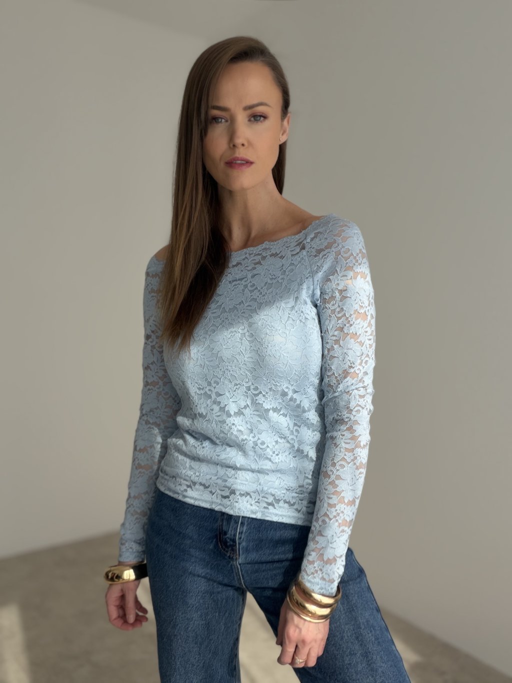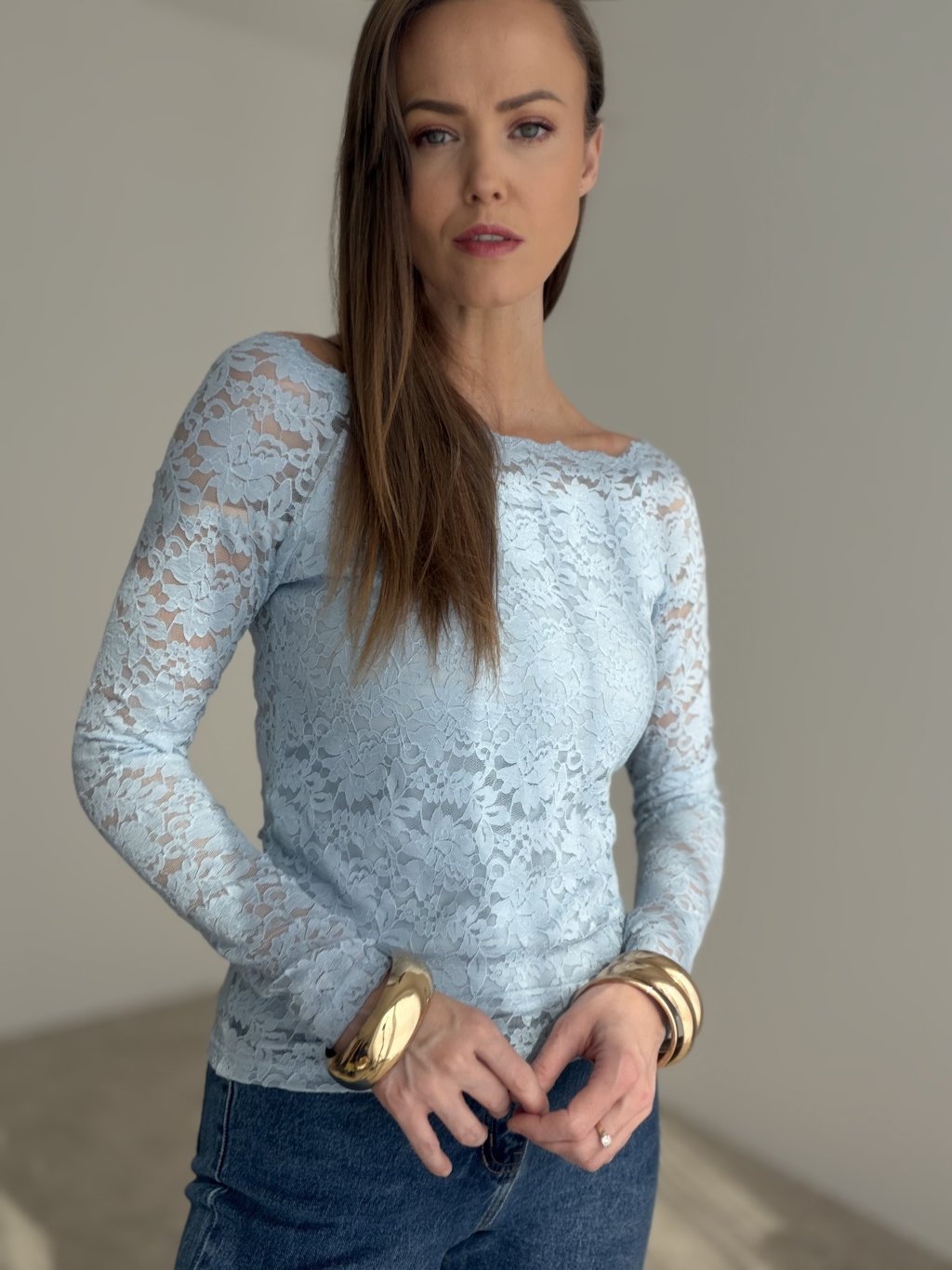 Ten koronkowy top to idealny element garderoby, który od razu podkręca nawet najprostszy zestaw. Ma kobiece wykończenie dekoltu z delikatnym efektem odkrytych ramion i dopasowany krój, który ładnie układa się na sylwetce. Koronka wygląda elegancko i lekko, dlatego top sprawdzi się zarówno na co dzień, jak i na bardziej wyjątkowe okazje. Świetnie pasuje do spodni z wysokim stanem, spódnicy oraz pod marynarkę.