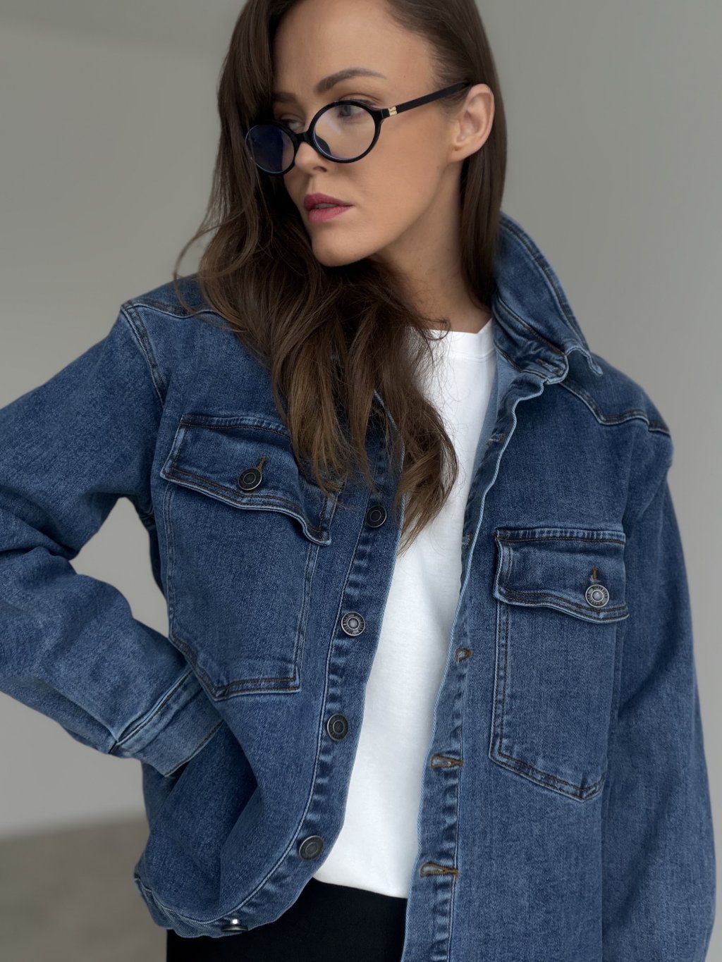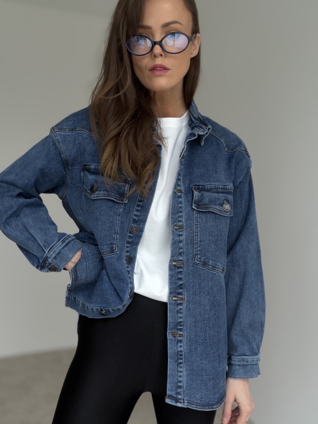 Koszula dżinsowa oversize zapinana na guziki, z kieszeniami na piersi. Idealna do warstwowych stylizacji na co dzień.