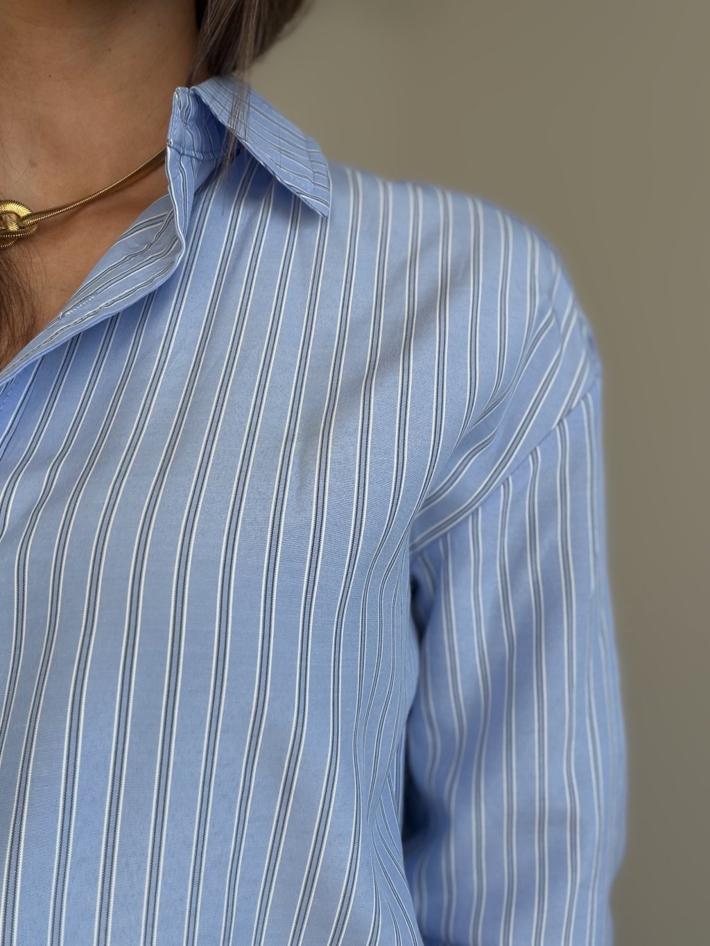Klasyczna koszula w delikatny prążek z kołnierzykiem, zapięciem na guziki, długimi rękawami z mankietami i kieszonką na piersi. Luźniejszy fason sprawia, że to uniwersalny wybór na co dzień.