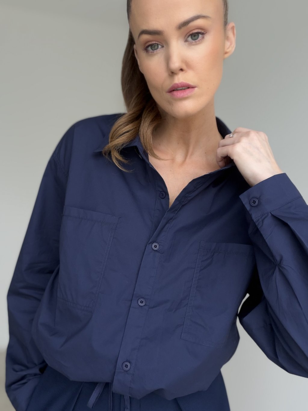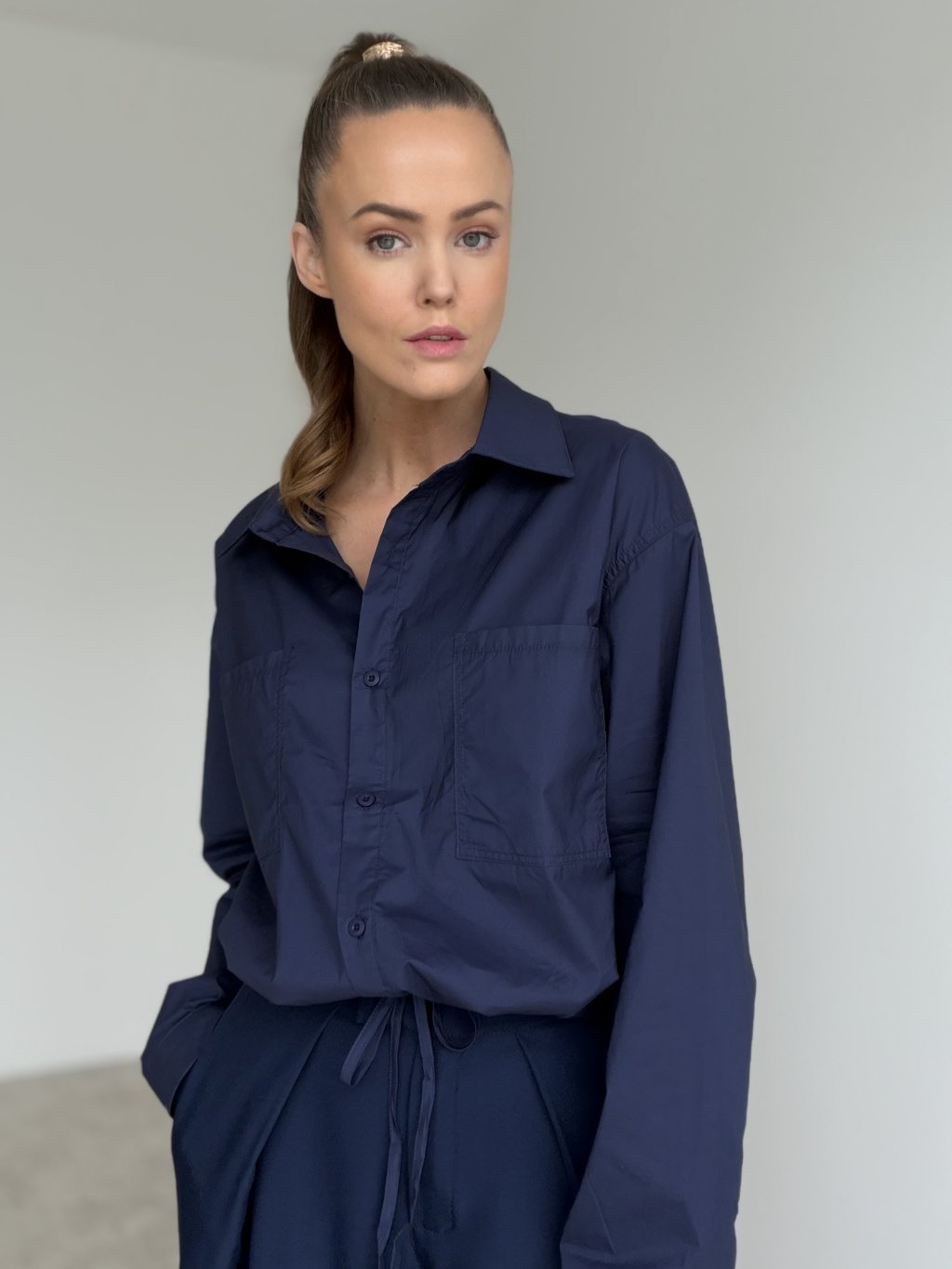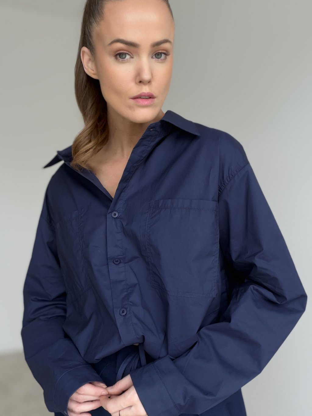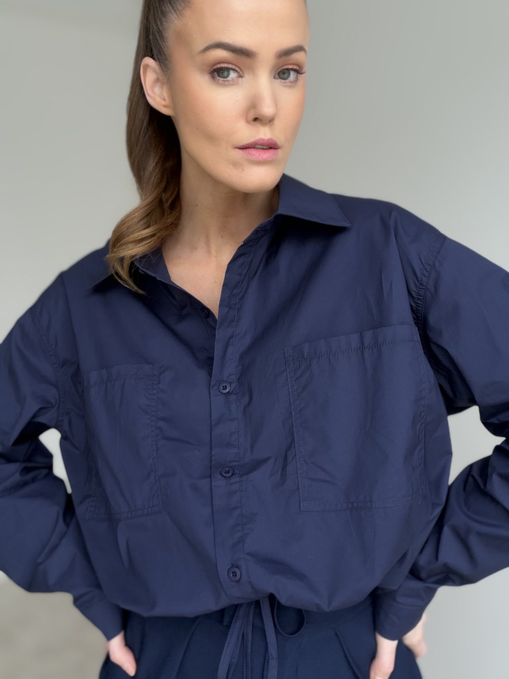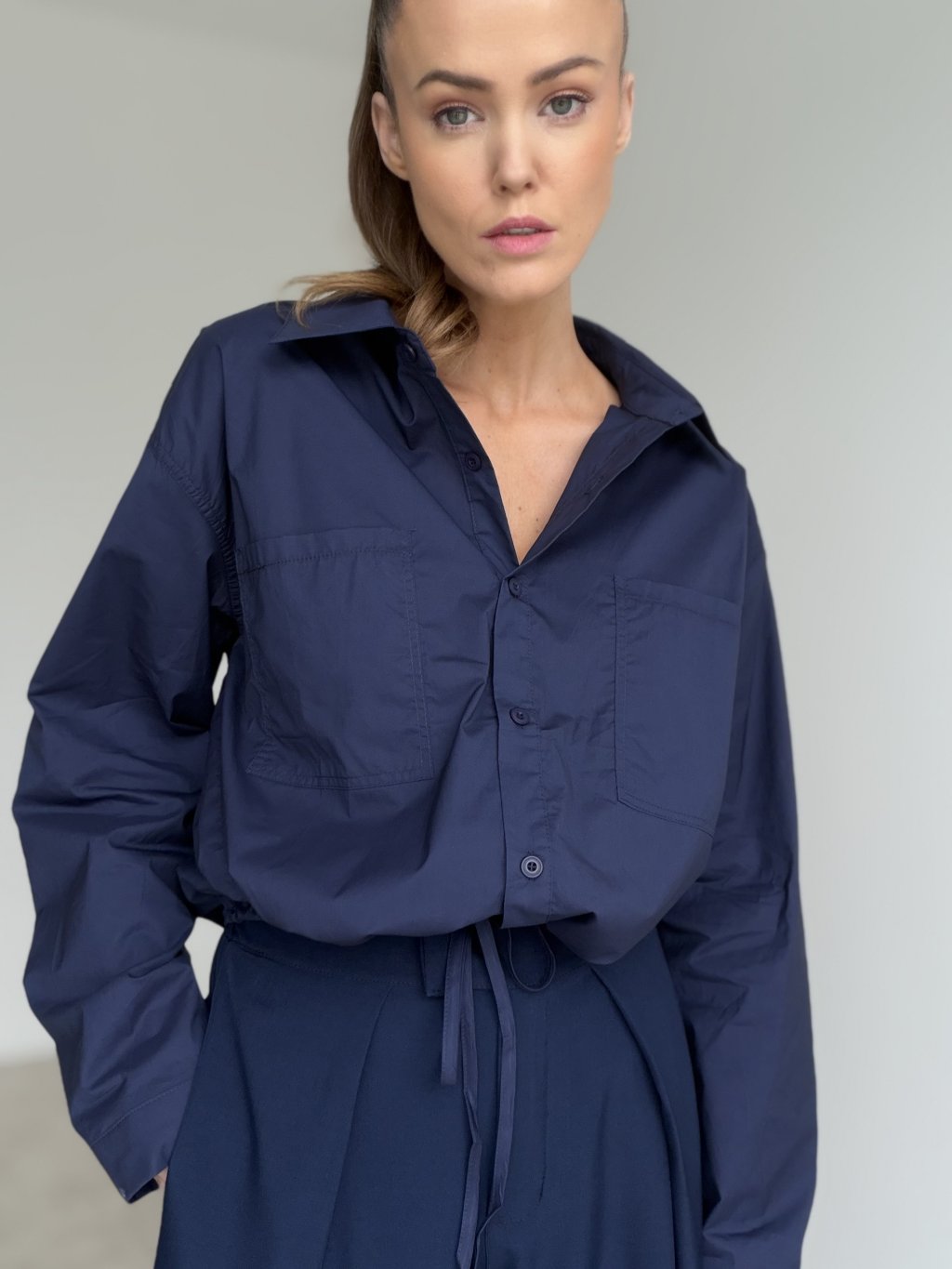 Bawełniana koszula wiązana w pasie z kieszeniami na piersi.