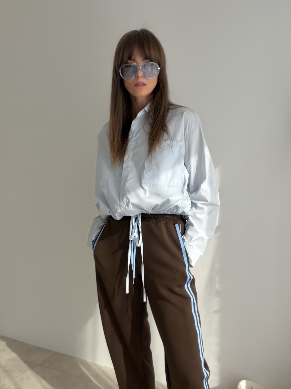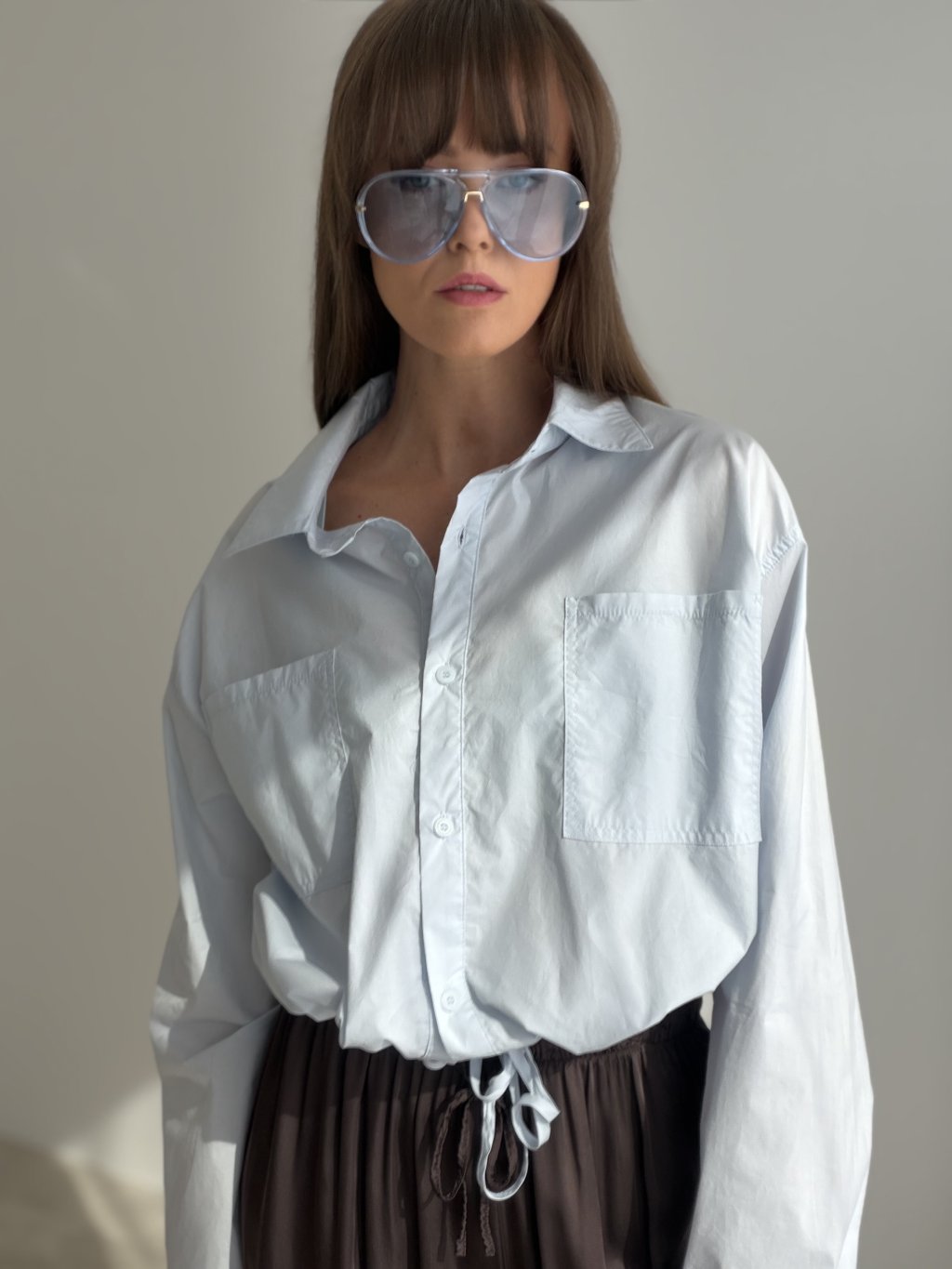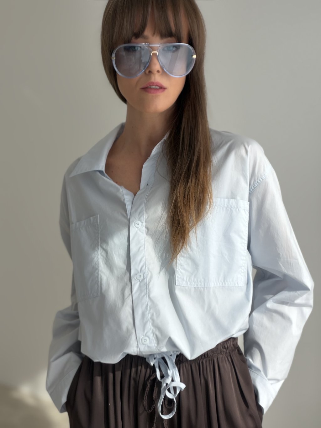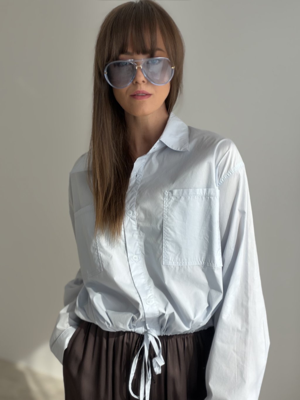 Swobodna i jednocześnie stylowa bawełniana koszula z detalem wiązania w pasie, który umożliwia dopasowanie kroju do figury. Podwójne kieszenie na piersiach i delikatnie marszczone rękawy dodają modelowi niezobowiązującej elegancji. Idealny wybór na co dzień – czy to do miasta, na spacer, czy do swobodnej stylizacji.