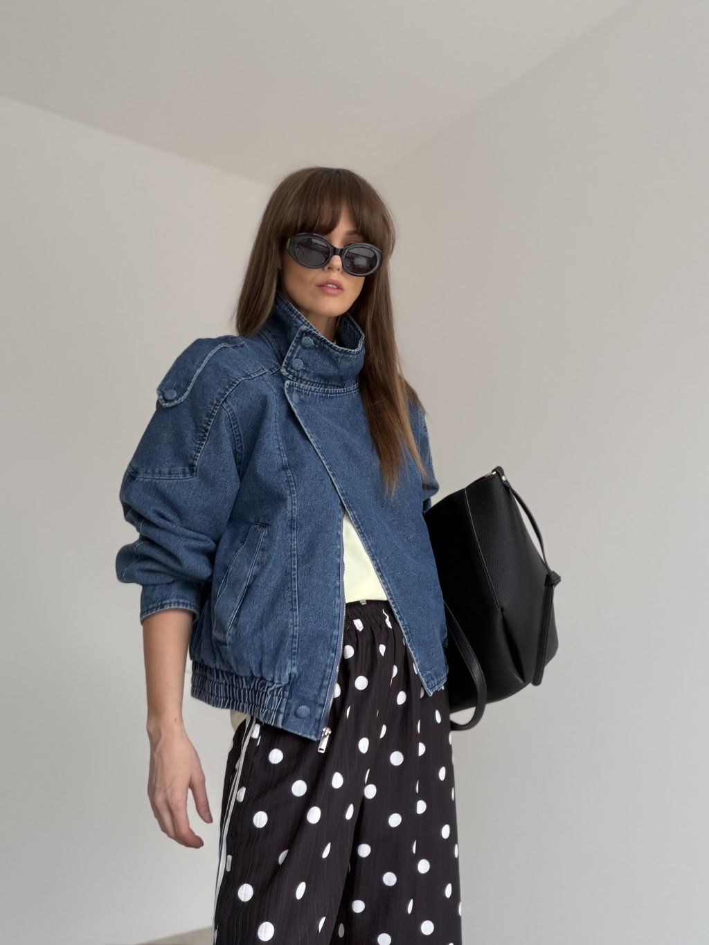 Ten model świetnie pasuje do sukienek, spodni, spódnic oraz prostych topów, tworząc swobodny, ale jednocześnie dopracowany look. Kurtka jeansowa to doskonała propozycja dla kobiet, które lubią uniwersalne ubrania z modowym akcentem i chcą mieć w swojej garderobie coś, po co będą sięgać wielokrotnie. To praktyczne i stylowe uzupełnienie stylizacji, które łatwo dopasowuje się do różnych stylów.