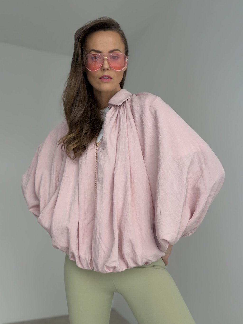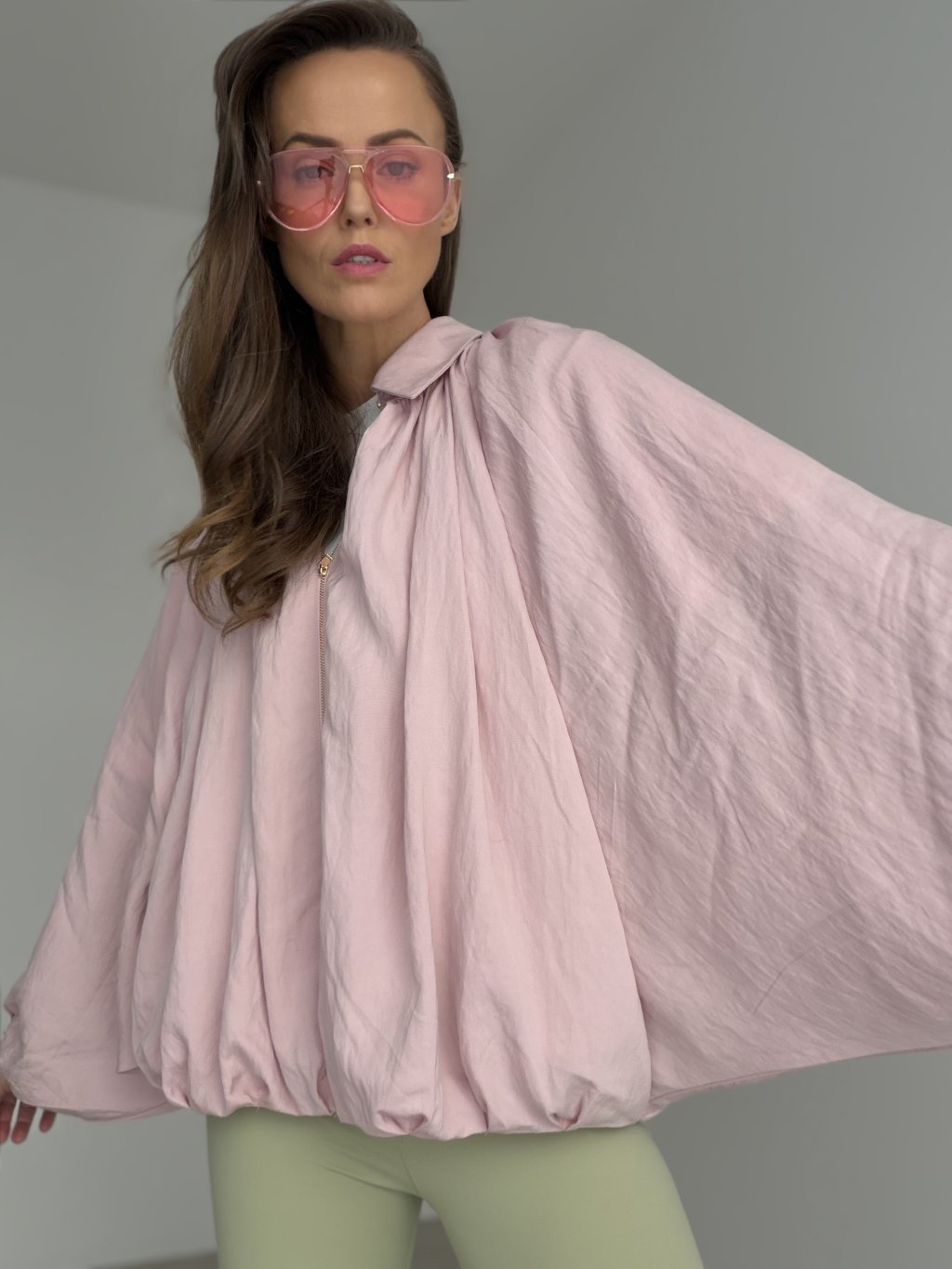 Lekka kurtka z lyocellu to świetna warstwa na dni, kiedy chcesz wyglądać elegancko, a jednocześnie czuć pełen komfort. Ma luźniejszy, nowoczesny krój oraz wyraziste rękawy, które dodają stylizacji miękkiej objętości i charakteru. Zapięcie na zamek i kołnierz tworzą czysty, ponadczasowy efekt, dzięki czemu kurtka sprawdzi się do pracy, w podróży i na co dzień. Delikatne ściągacze przy mankietach i u dołu pomagają utrzymać kształt i ładnie układają się na sylwetce. Pasuje zarówno do spodni z wyższym stanem, jak i do sukienek czy spódnic.