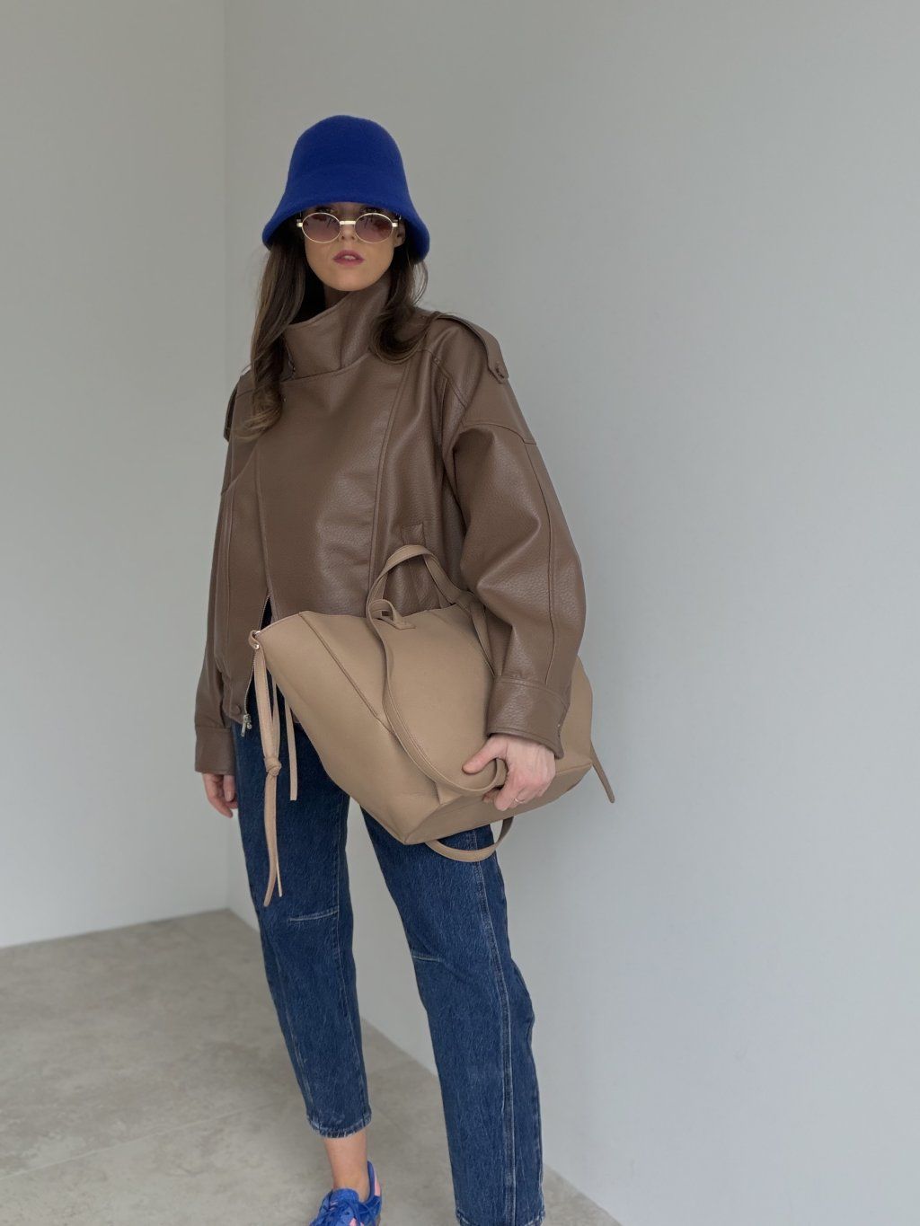 Krój oversize idealnie nadaje się do warstw — spróbuj z golfem lub bluzą.