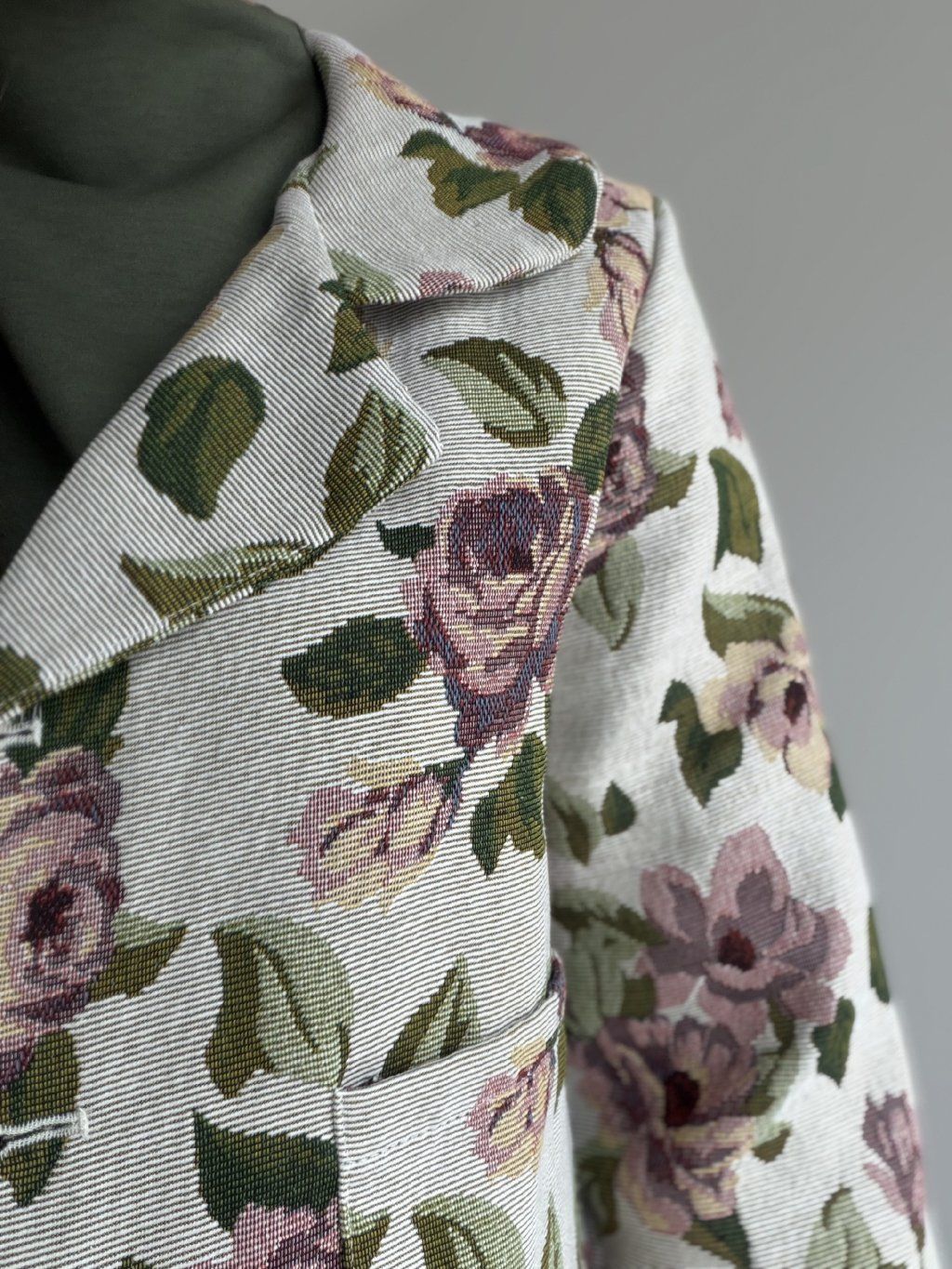 Elegancka marynarka w kwiaty to wyrazisty, a jednocześnie bardzo kobiecy element garderoby, który natychmiast ożywi każdą stylizację. Jej stylowy krój prezentuje się schludnie i elegancko, a romantyczny wzór dodaje całości lekkości i subtelnego charakteru. To idealna propozycja dla kobiet, które chcą wzbogacić swoją szafę o coś oryginalnego, ponadczasowego i łatwego do stylizowania. Świetnie komponuje się z prostymi topami, spodniami oraz spódnicami, tworząc elegancki look odpowiedni zarówno na co dzień, jak i na bardziej wyjątkowe okazje. W zależności od dodatków marynarka może wyglądać bardzo szykownie, świeżo i modnie.