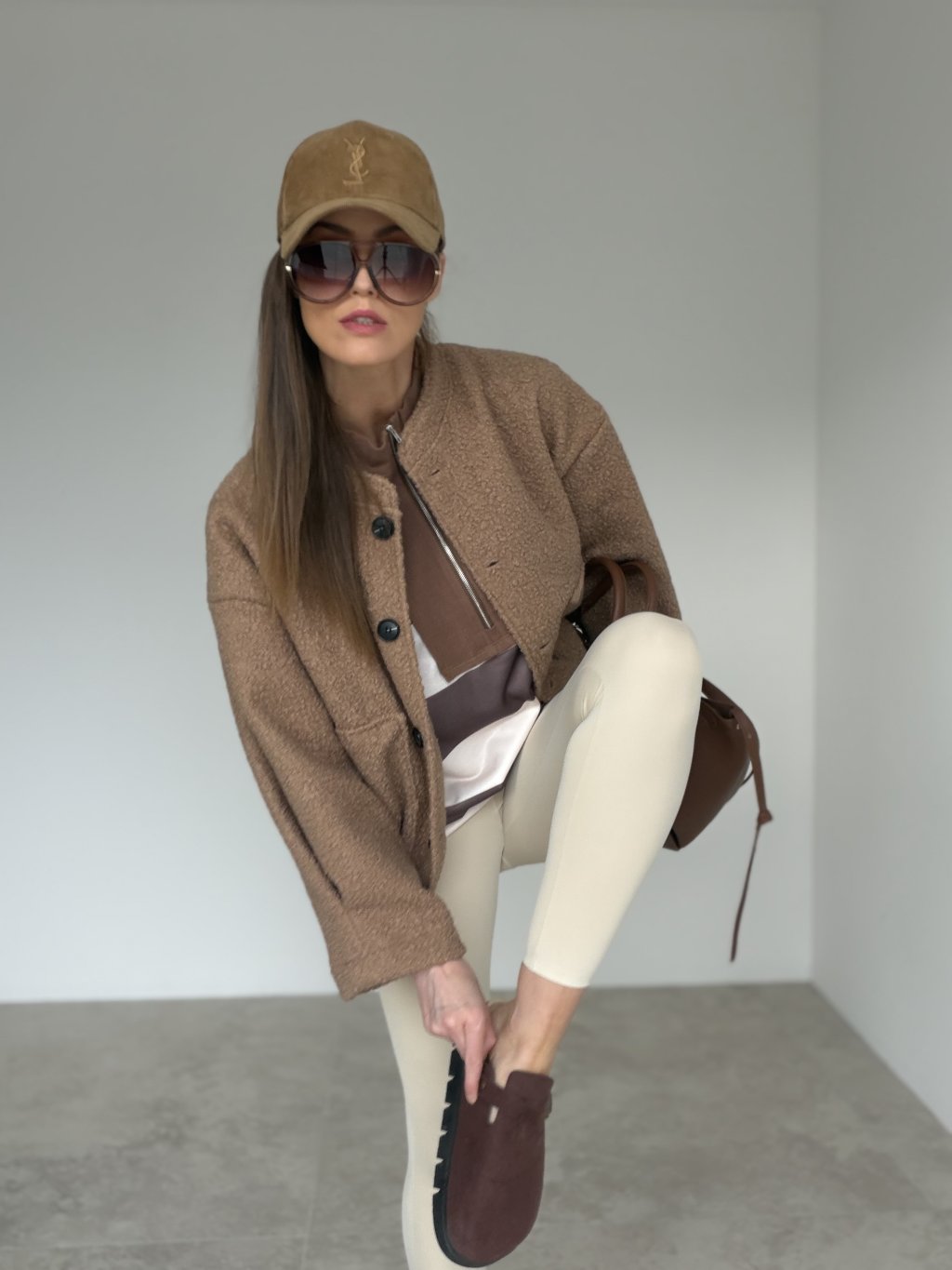 Te modelujące legginsy zostały zaprojektowane tak, aby podkreślać sylwetkę, a jednocześnie zapewniać wygodę na co dzień i podczas ruchu. Wysoki stan dobrze trzyma w okolicy brzucha i daje efekt bardziej uporządkowanego, dopracowanego wyglądu. Zapięcie na zamek z przodu to praktyczny detal, który dodaje nowoczesnego charakteru i wyróżnia ten model na tle klasycznych legginsów. Materiał jest gładki, elastyczny i dopasowuje się do ciała bez zbędnego odstającego efektu. Przemyślane przeszycia optycznie modelują nogi i wyglądają bardzo korzystnie. Legginsy łatwo zestawić z krótszym topem, koszulą oversize albo dłuższą warstwą, tworząc spójną stylizację.