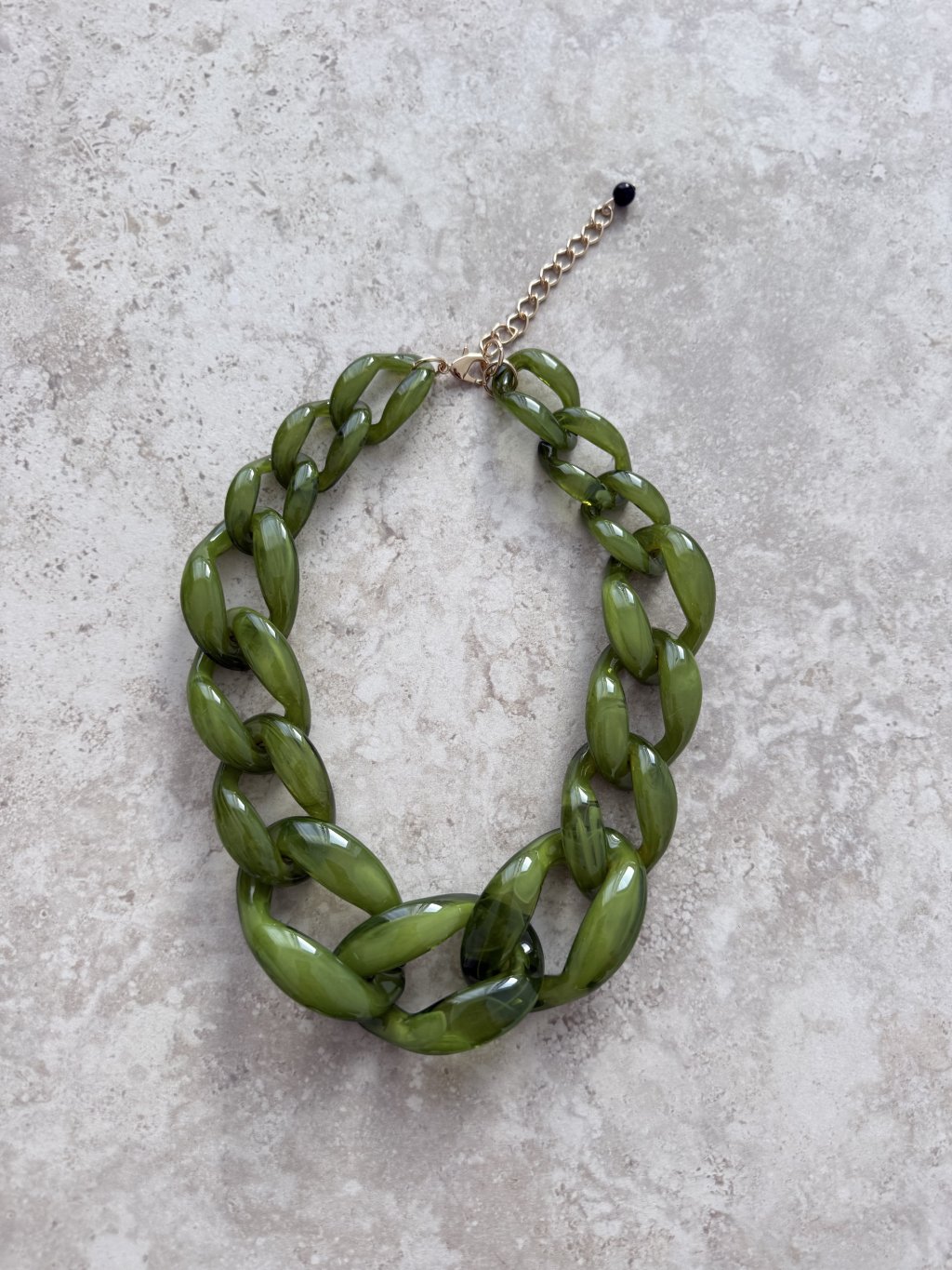 Wyrazisty naszyjnik z dużymi błyszczącymi ogniwami, zapięciem na karabińczyk i łańcuszkiem przedłużającym. Idealny, aby szybko podkręcić prostą stylizację.