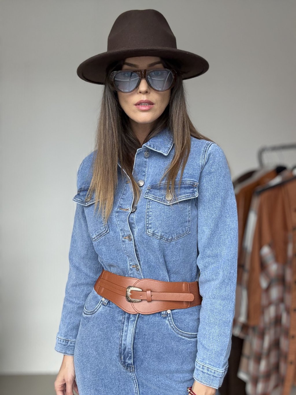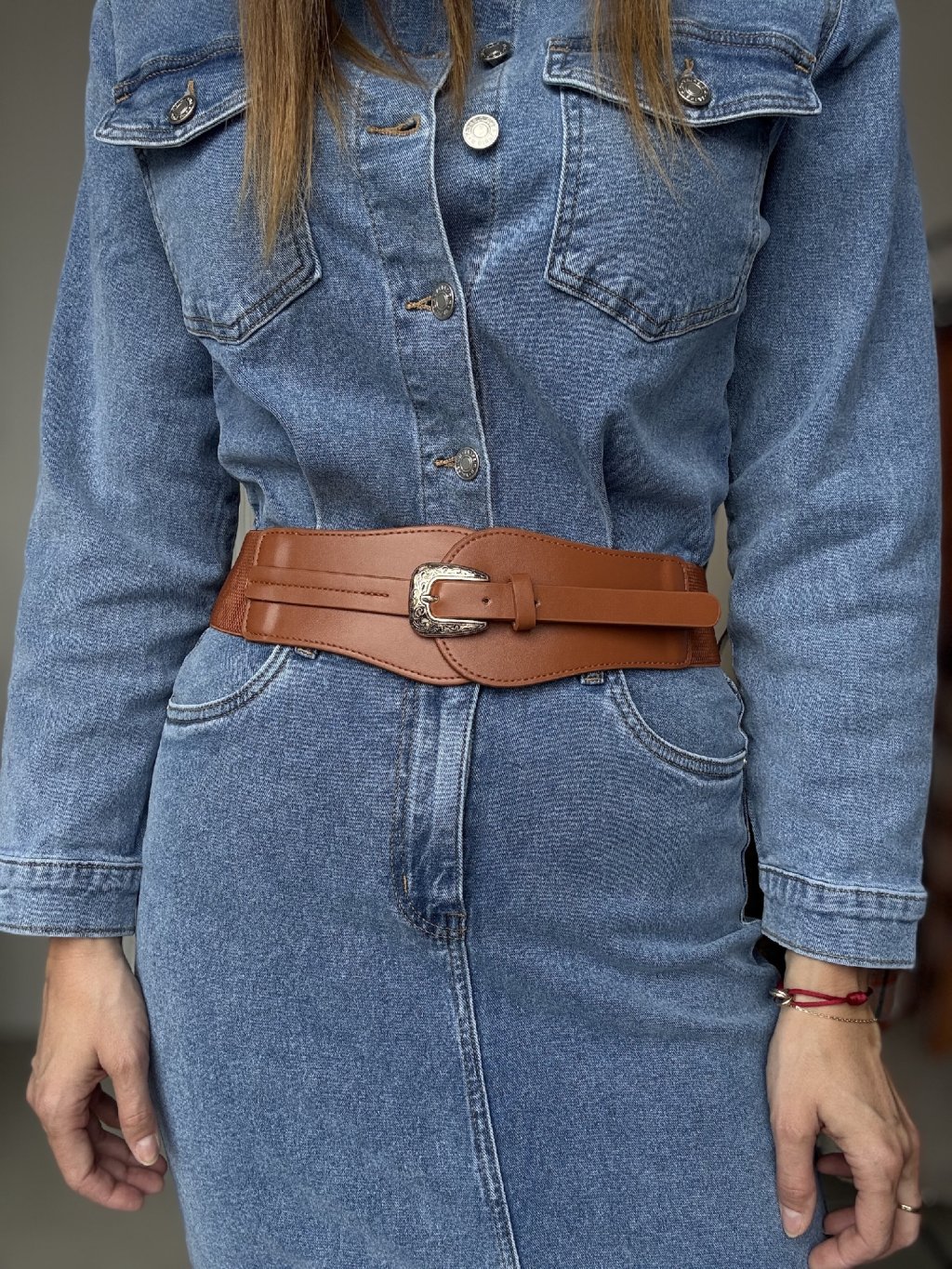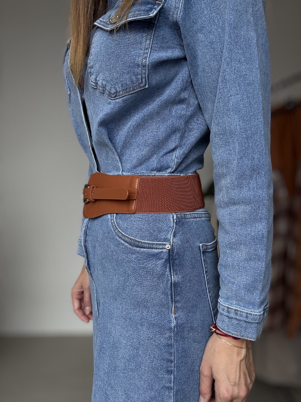 Szeroki pasek z klamrą i elastycznym tyłem – podkreśla talię i dodaje szyku.