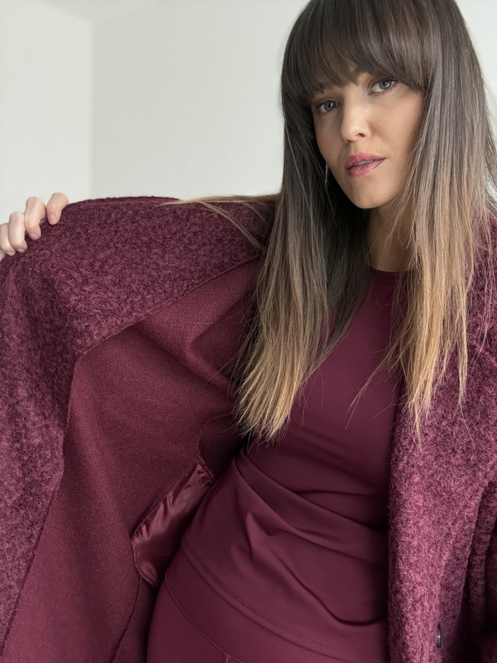 • jeśli chcesz podkreślić talię, załóż pod spód dopasowany zestaw i dodaj pasek na wierzch płaszcza