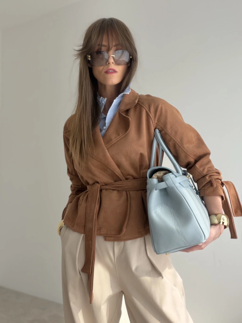 Elegancka torebka o sztywnej formie i ponadczasowym designie to wyjątkowy dodatek, który natychmiast podkreśla charakter całej stylizacji. Wyróżnia się wyrafinowanymi liniami, starannie dopracowanymi detalami i luksusowym wyglądem, dzięki czemu prezentuje się bardzo kobieco i stylowo. Solidne uchwyty zapewniają wygodne noszenie w dłoni, a cała forma torebki pięknie zachowuje swój kształt, nadając jej elegancki i reprezentacyjny charakter.