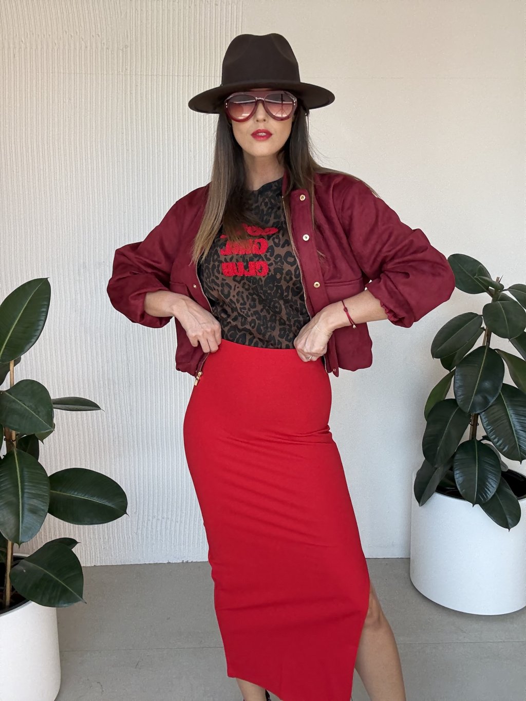 Ołówkowa spódnica z wysokim stanem i bocznym rozcięciem.