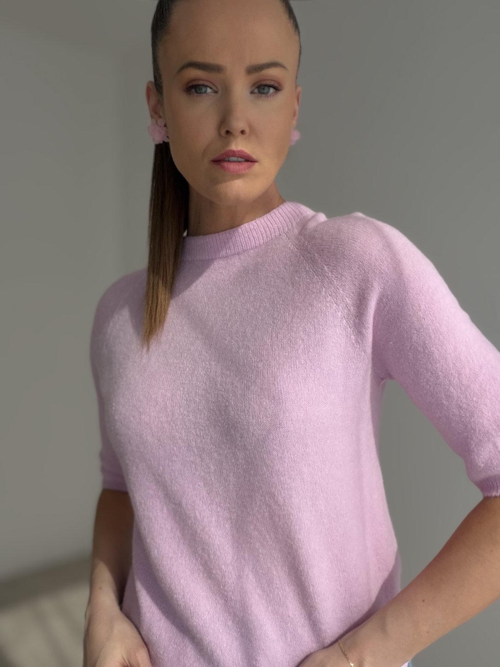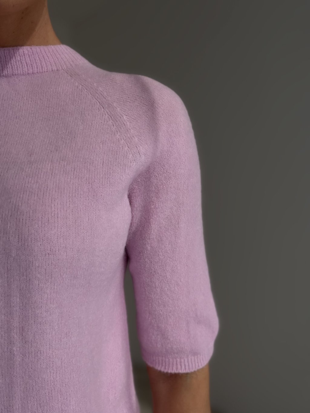 Sweter z krótkim rękawem w minimalistycznym stylu, odpowiedni do codziennego noszenia.