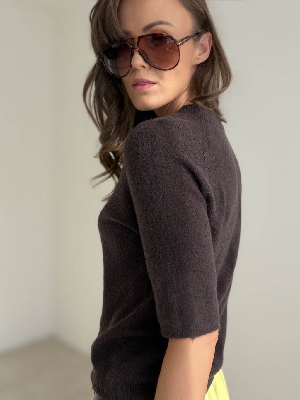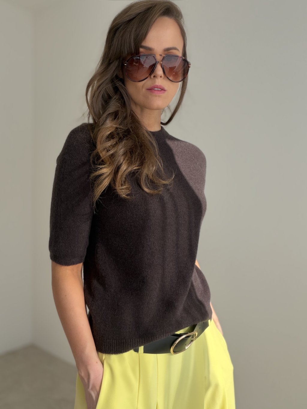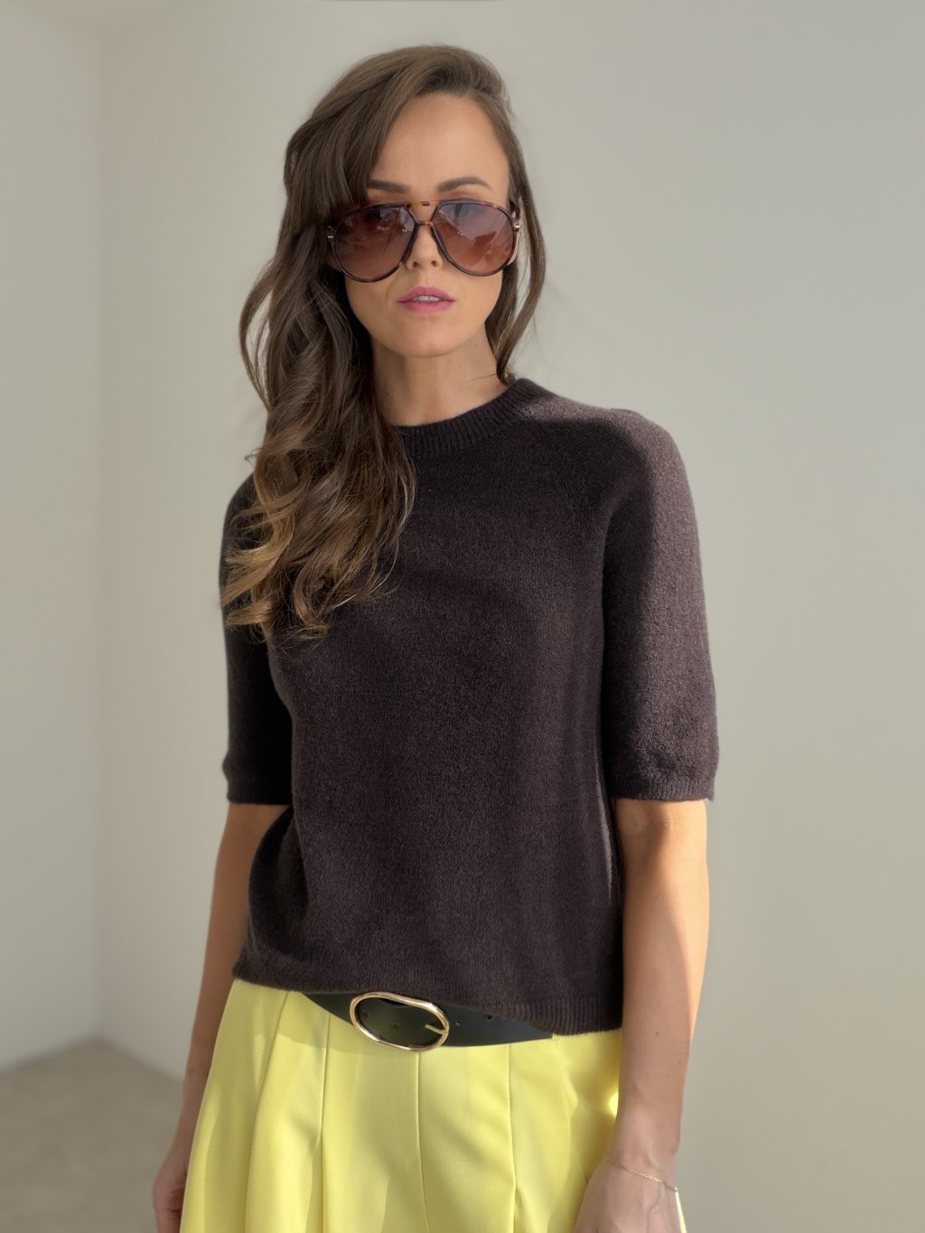 Sweter z krótkim rękawem w minimalistycznym stylu, odpowiedni do codziennego noszenia.