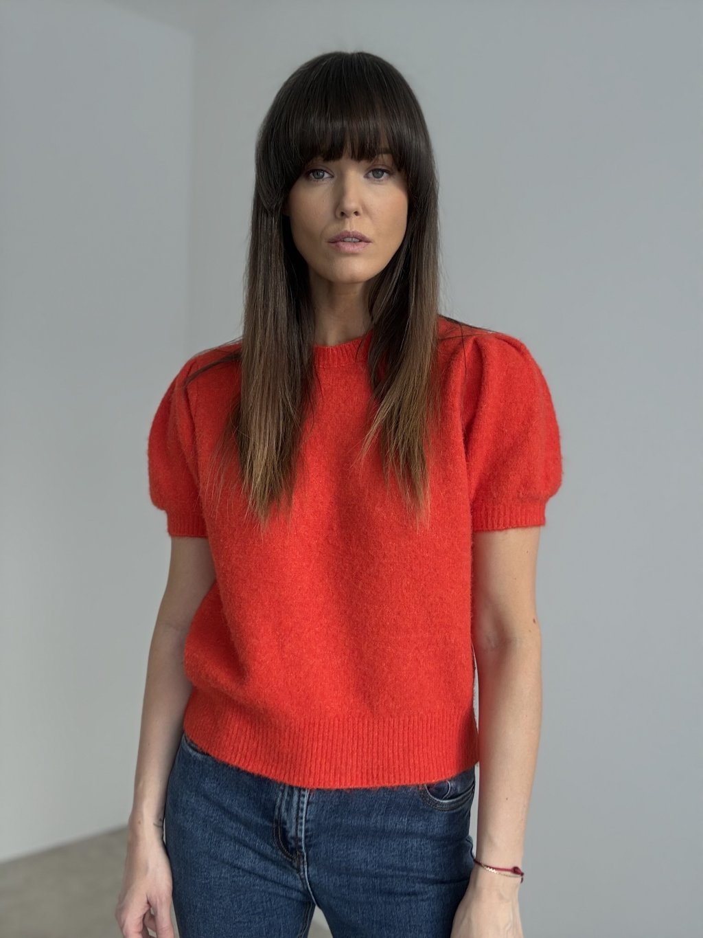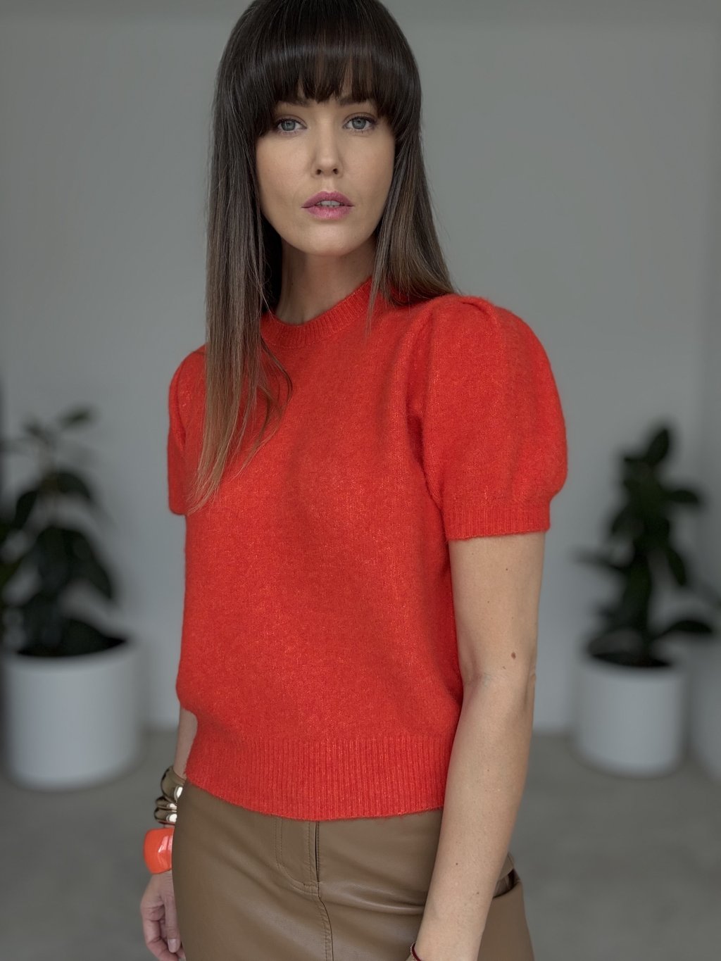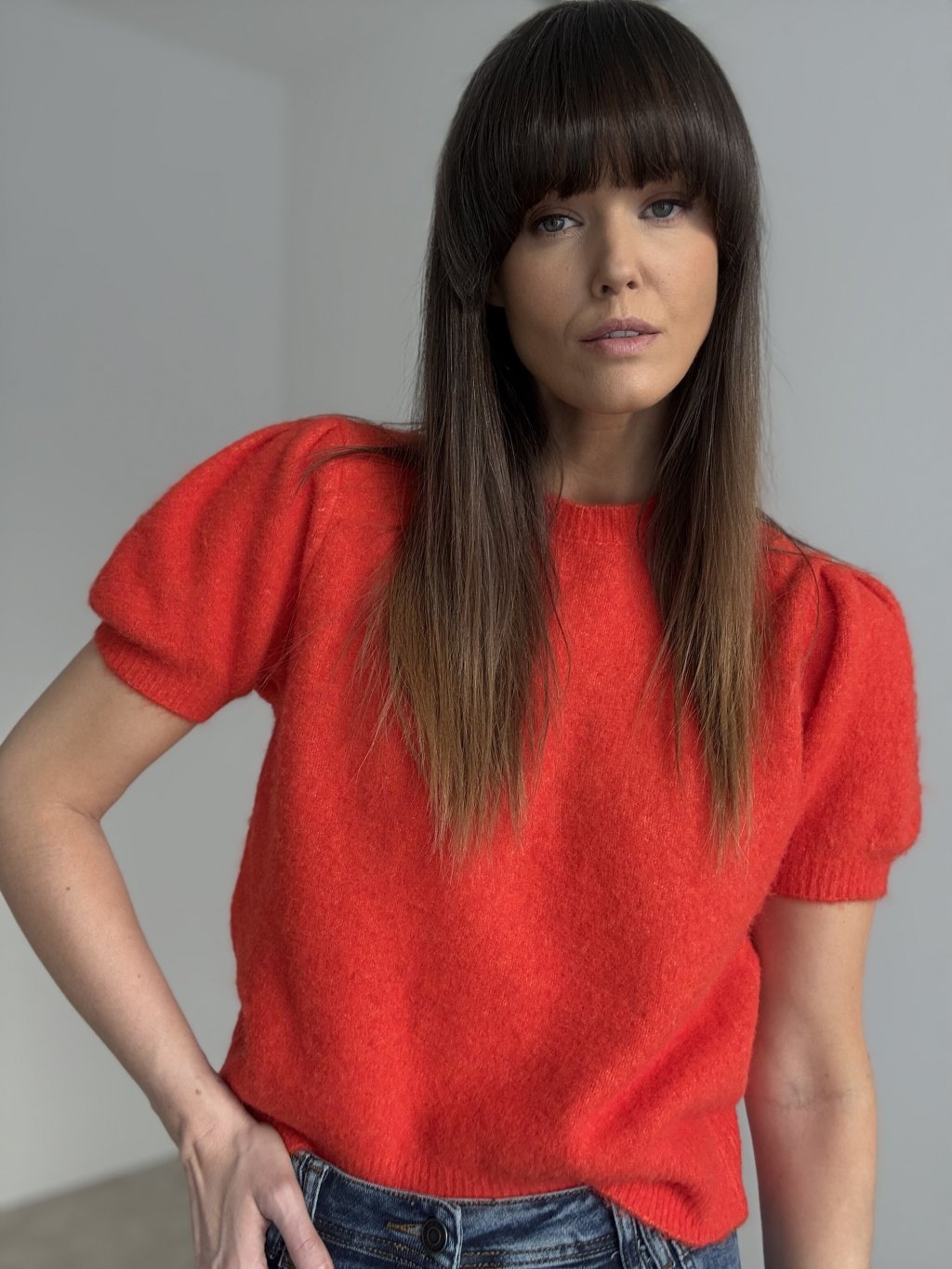 Sweter z krótkim rękawem, który łączy wygodę i elegancję w jednym modelu. Wykonany z miękkiego, przyjemnego w dotyku materiału, zapewnia komfort noszenia przez cały dzień. Krótkie rękawy i klasyczny krój pozwalają na uniwersalne stylizacje – od eleganckiej spódnicy po codzienne spodnie. Idealny wybór na sezon przejściowy lub do noszenia pod płaszczem czy marynarką.