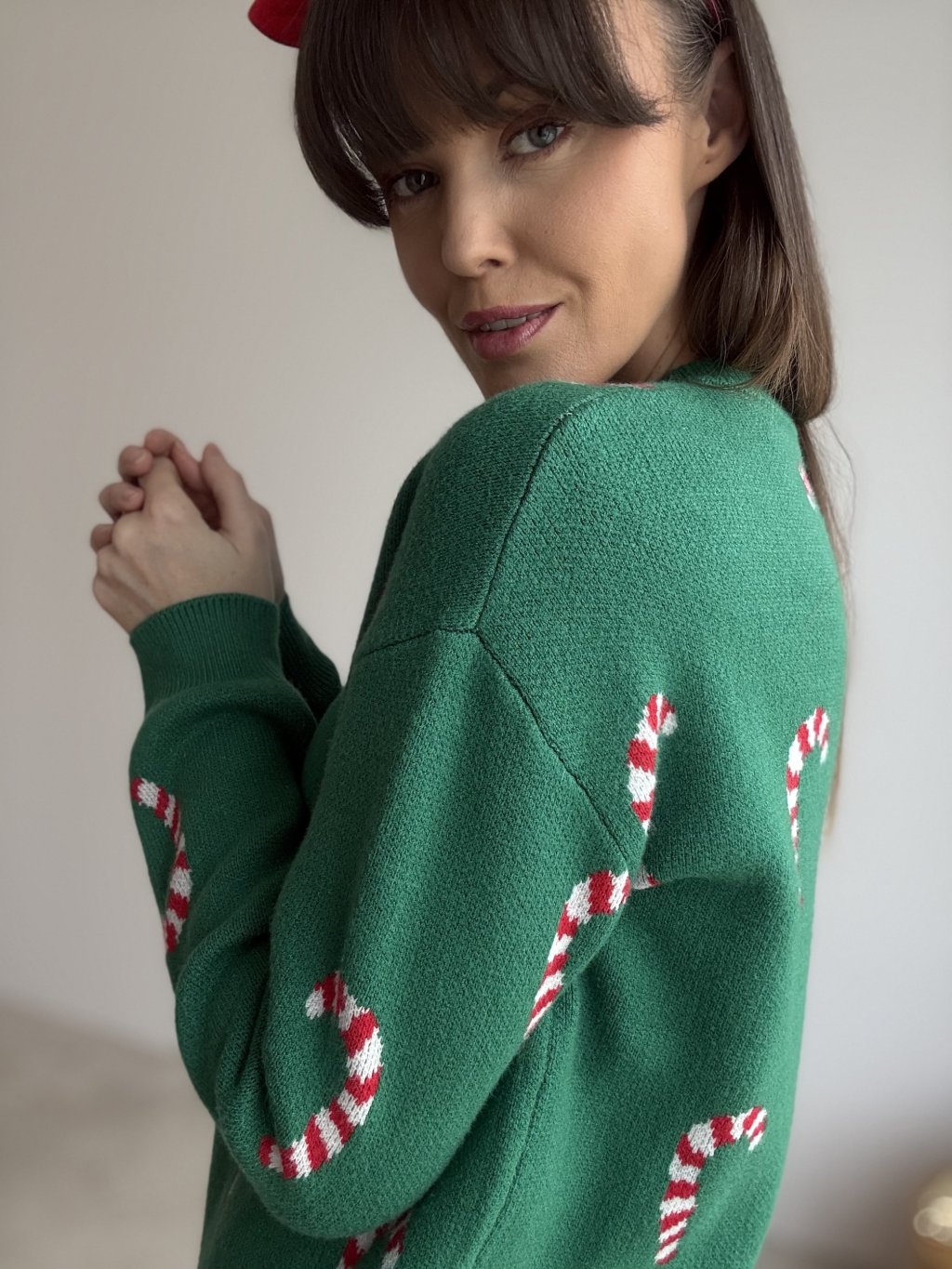Wesoły świąteczny sweter z motywem cukrowych lasek, który od razu wprowadza w bożonarodzeniowy nastrój. Miękka, ciepła dzianina jest przyjemna dla skóry, a wygodny krój z okrągłym dekoltem i długimi rękawami sprawia, że sweter świetnie nosi się przez cały dzień. Całości dopełnia wzór rozmieszczony na całej powierzchni, dzięki czemu model wygląda radośnie, ale wciąż stylowo – idealnie na rodzinne spotkania, świąteczne dni w pracy i zimowe spacery. Ściągacze w pasie, przy mankietach i dekolcie pomagają utrzymać kształt swetra i delikatnie podkreślają sylwetkę.