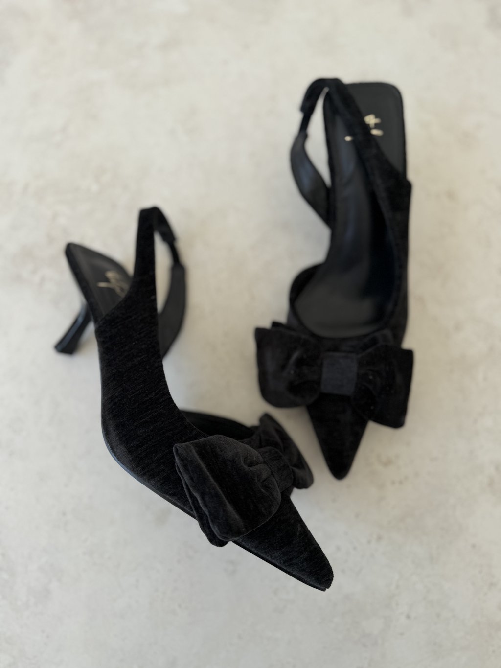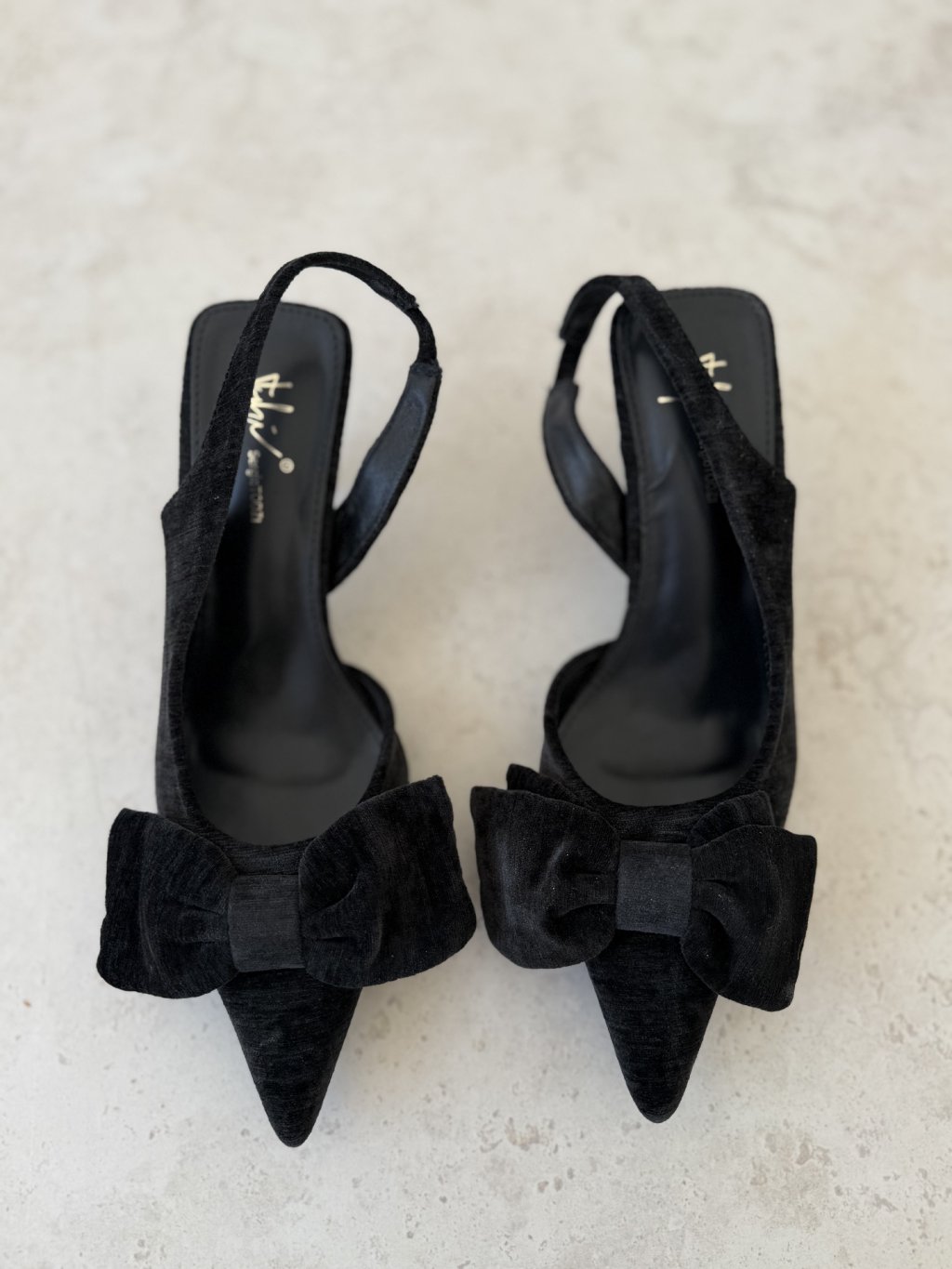 Eleganckie szpilki ze szpiczastym noskiem, odkrytą piętą i efektowną kokardą, które dodają stylizacji kobiecego i szykownego charakteru. Idealny wybór na wyjątkowe okazje oraz wtedy, gdy chcesz dodać swojemu lookowi wyrafinowany detal.