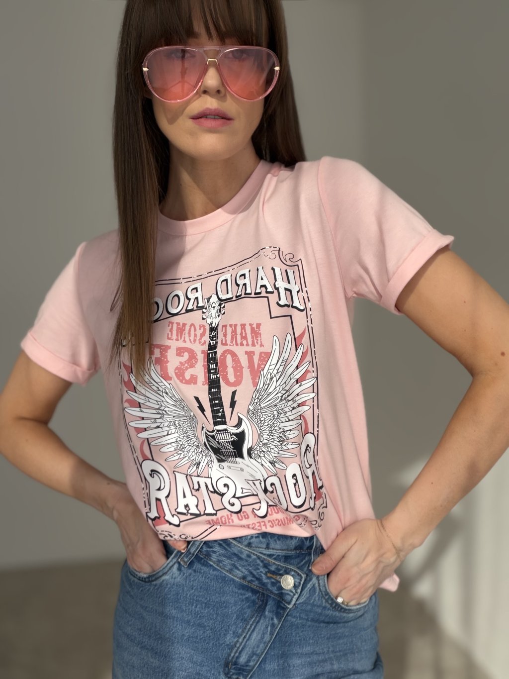 T-shirt z wyrazistym nadrukiem to świetna baza do codziennych stylizacji, gdy chcesz prosty element z charakterem. Ma klasyczny okrągły dekolt, krótkie rękawy z delikatnie podwiniętym wykończeniem oraz wygodny krój, który sprawdza się przez cały dzień. Materiał jest przyjemny w dotyku, a koszulkę łatwo zestawisz z jeansami, szortami lub spódnicą. Nadruk z przodu nadaje całości wyrazistości i sprawia, że t-shirt gra główną rolę w stylizacji – wystarczą minimalistyczne dodatki. Idealny na co dzień, na wyjazdy i na weekend.