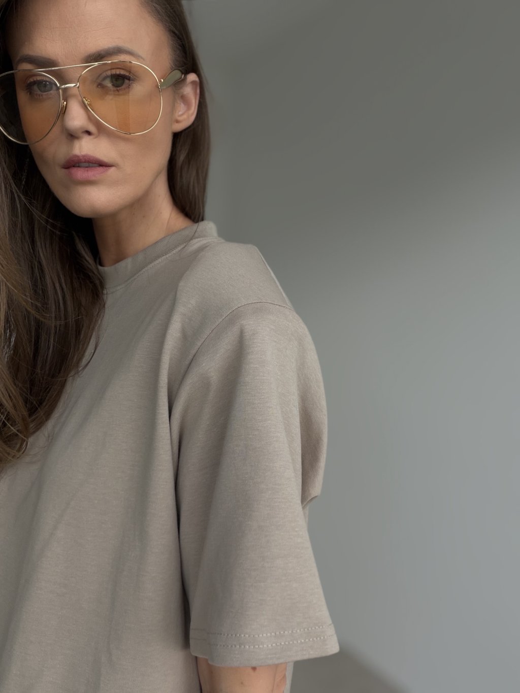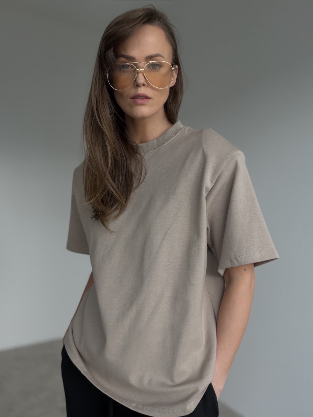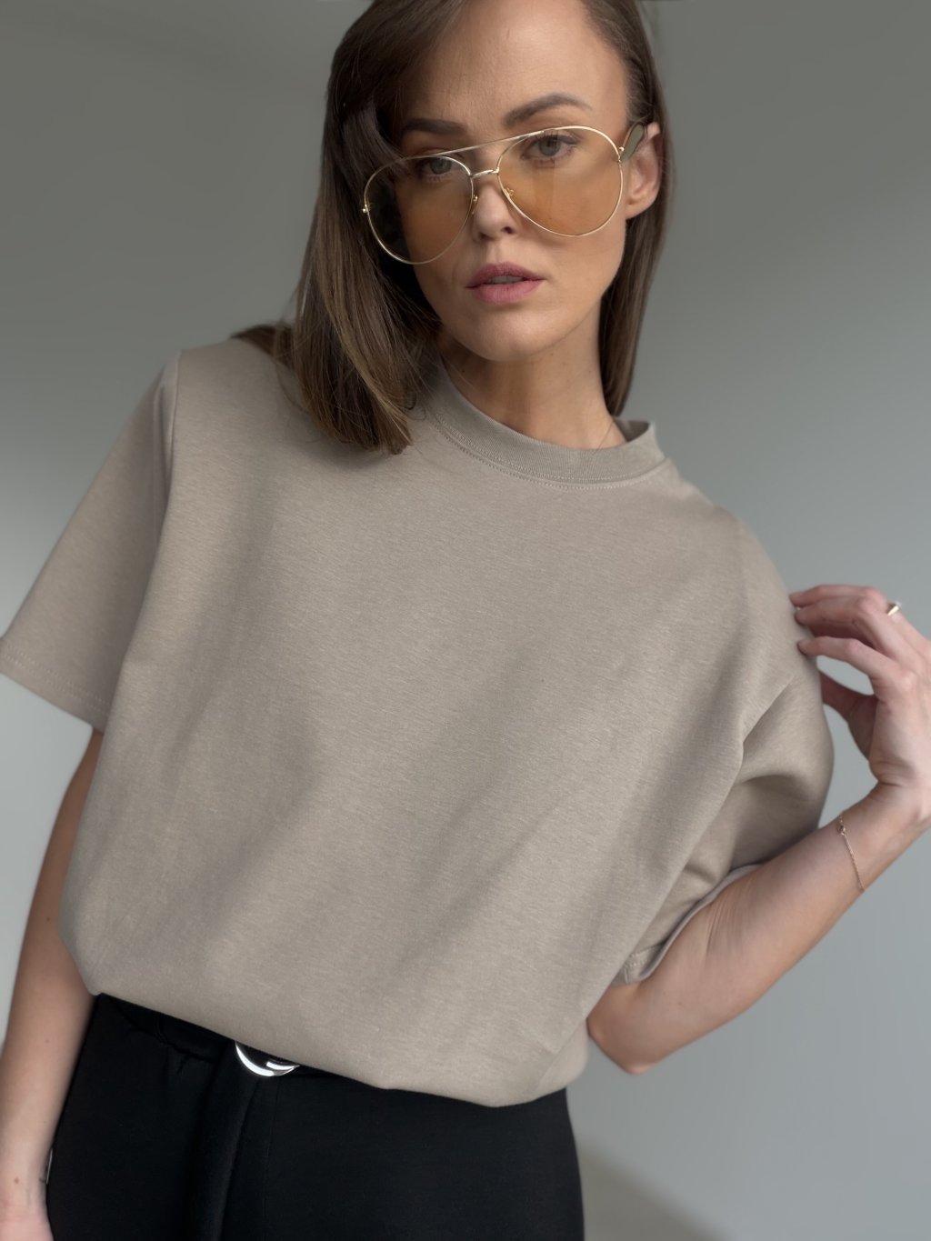 Ten T-shirt z premium grubej bawełny to klasyk w dopracowanym wydaniu — wygląda elegancko, a jednocześnie jest bardzo wygodny. Grubszy materiał świetnie trzyma formę, daje czyste wykończenie i tworzy uporządkowaną sylwetkę. Krój jest luźniejszy i nowoczesny, z delikatnie obniżoną linią ramion oraz okrągłym dekoltem, dzięki czemu T-shirt prezentuje się schludnie nawet w prostych stylizacjach. Rękawy i wykończenia są staranne, co podkreśla jakość i sprawia, że to idealny wybór zarówno na co dzień, jak i do bardziej dopracowanych zestawów.