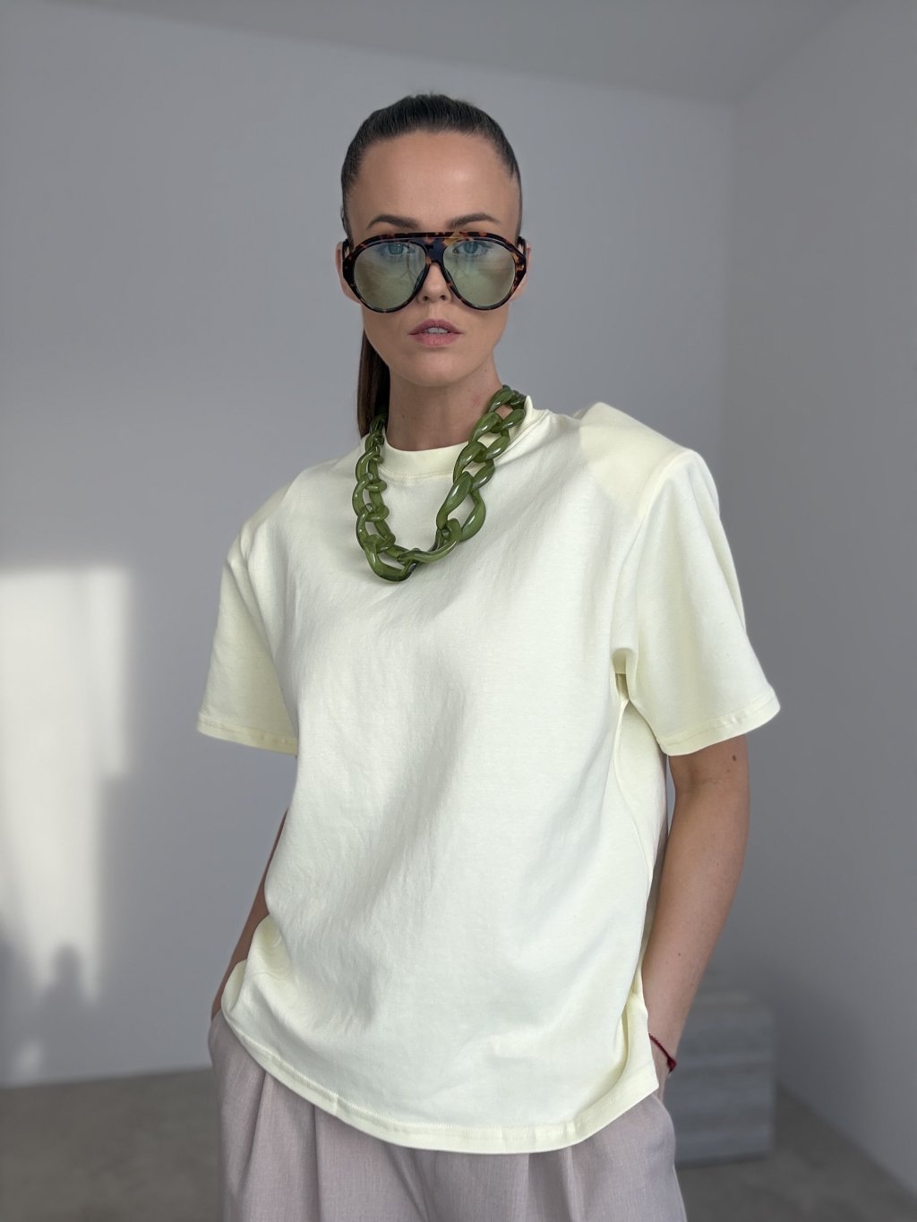 T-shirt z poduszkami na ramionach