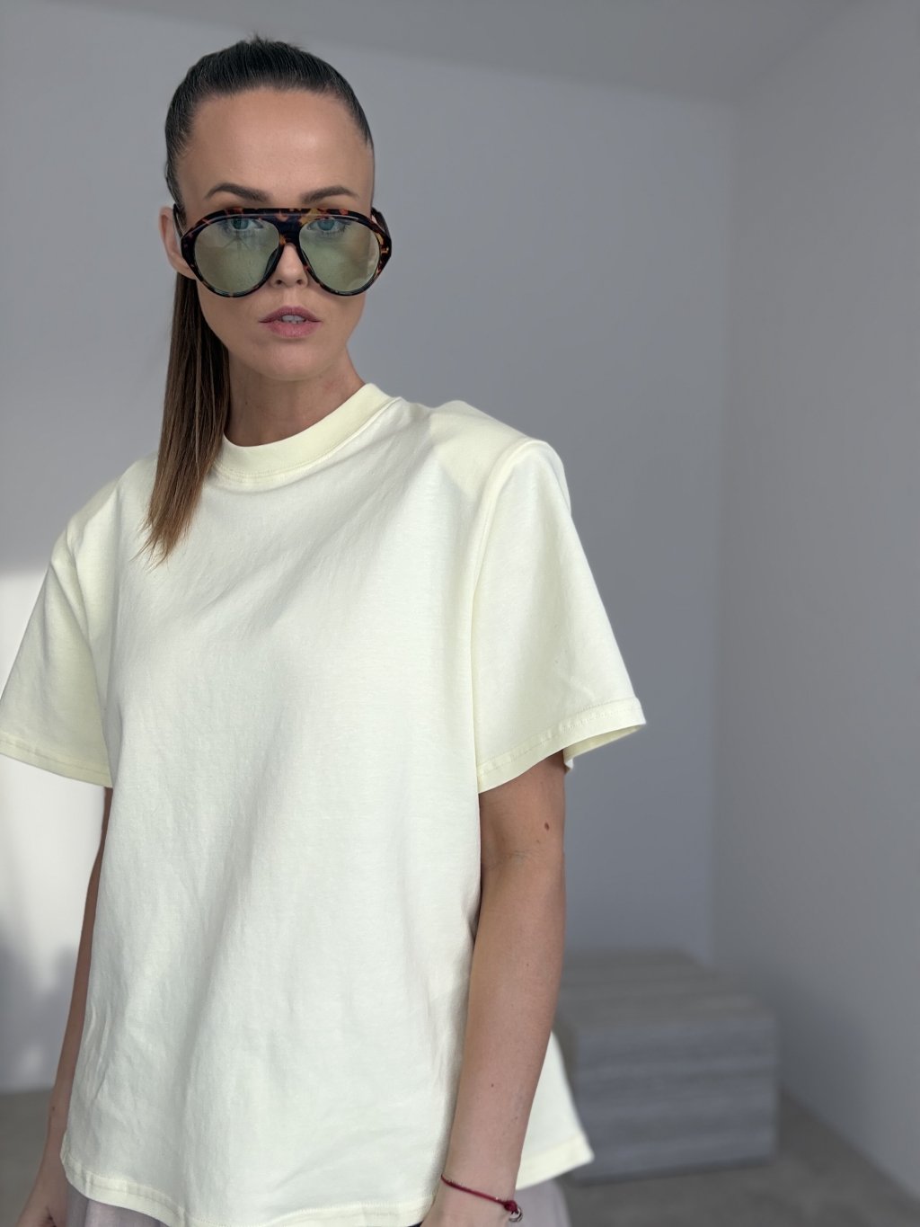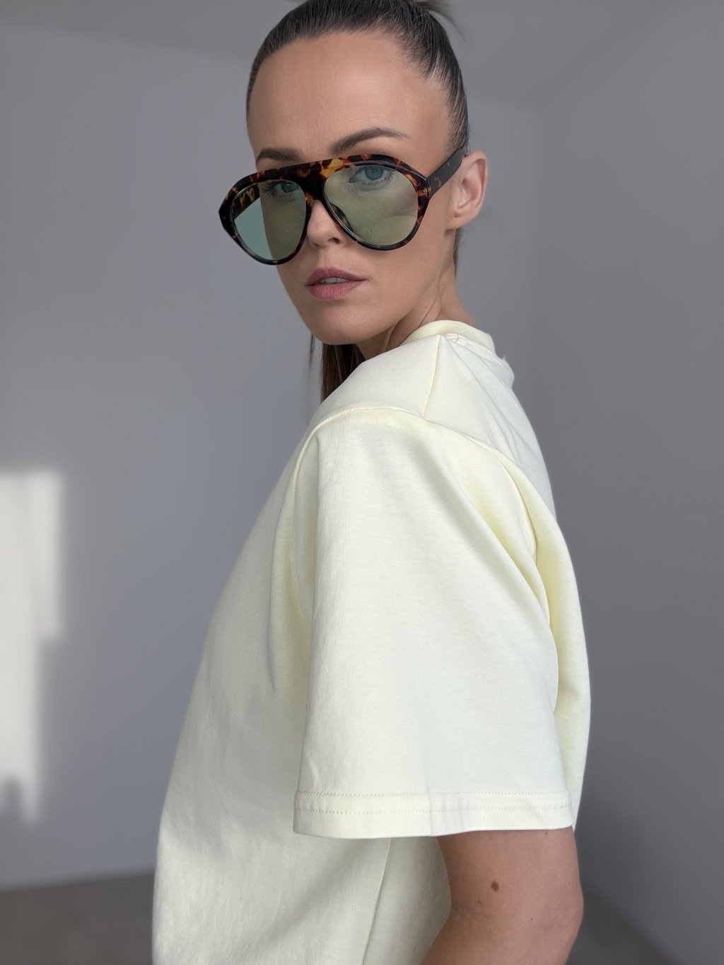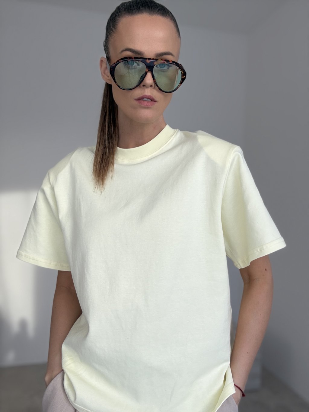 Ten T-shirt z premium grubej bawełny to klasyk w dopracowanym wydaniu — wygląda elegancko, a jednocześnie jest bardzo wygodny. Grubszy materiał świetnie trzyma formę, daje czyste wykończenie i tworzy uporządkowaną sylwetkę. Krój jest luźniejszy i nowoczesny, z delikatnie obniżoną linią ramion oraz okrągłym dekoltem, dzięki czemu T-shirt prezentuje się schludnie nawet w prostych stylizacjach. Rękawy i wykończenia są staranne, co podkreśla jakość i sprawia, że to idealny wybór zarówno na co dzień, jak i do bardziej dopracowanych zestawów.